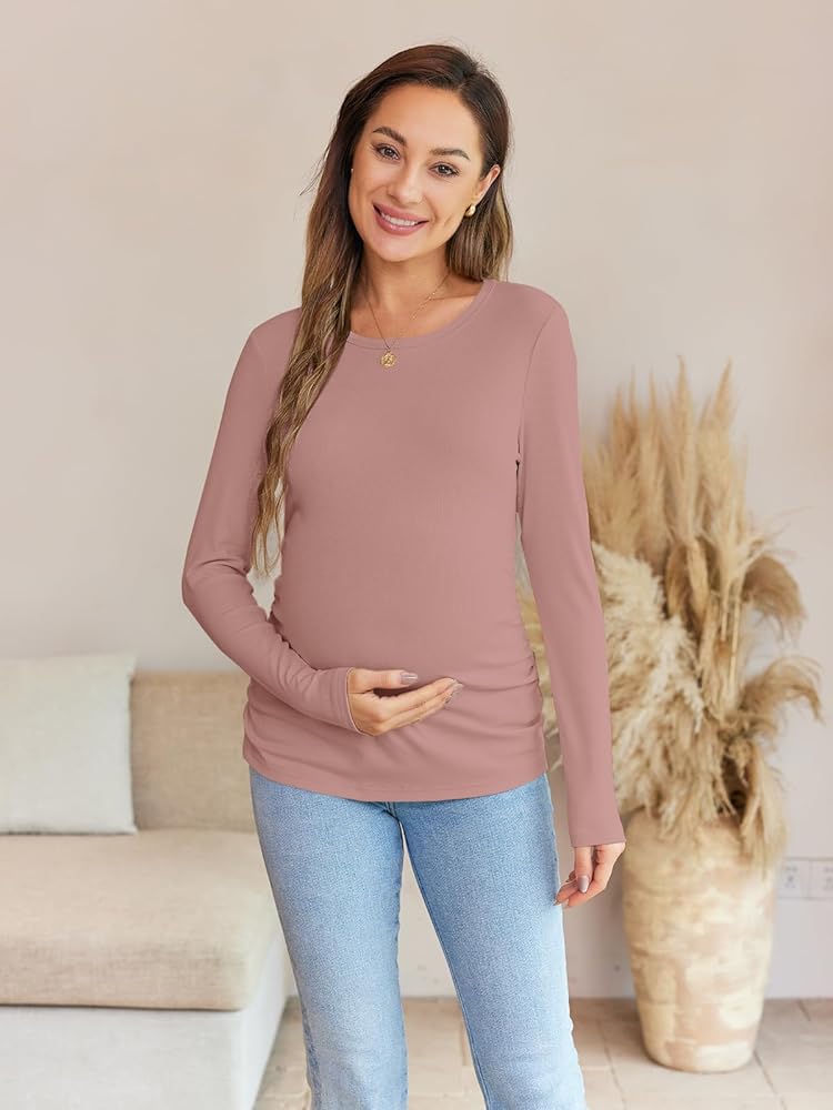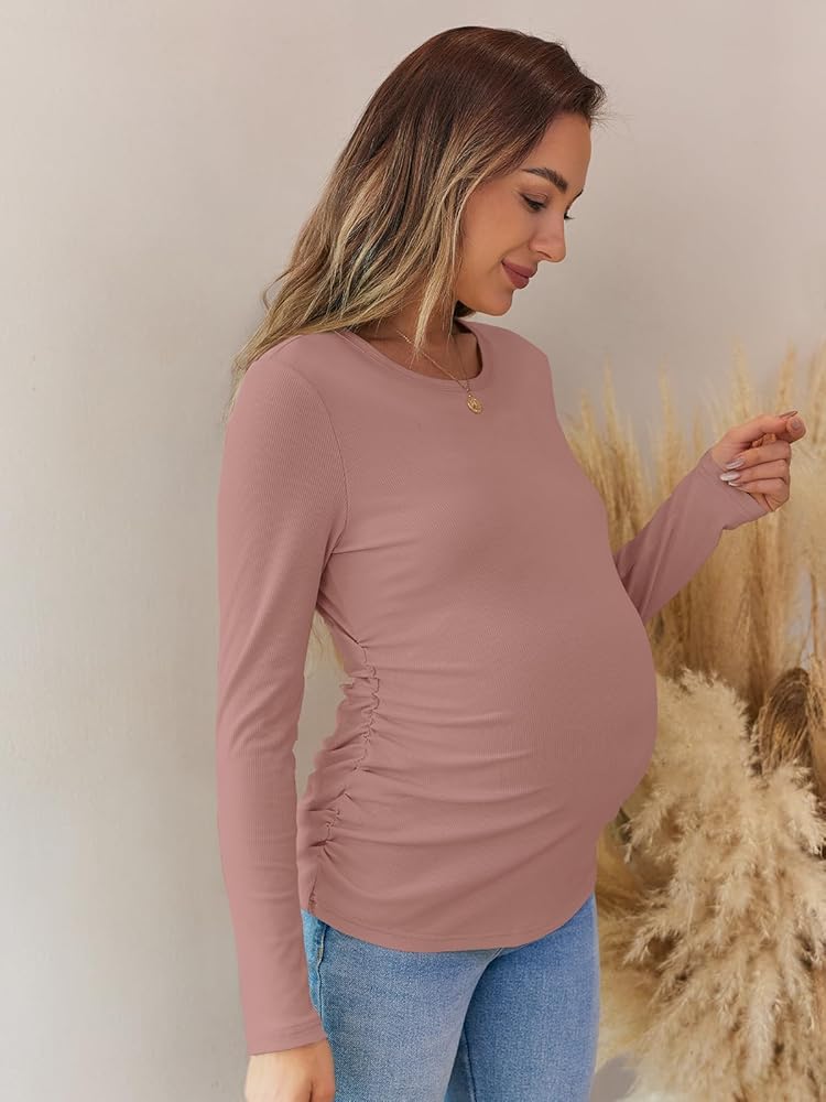 Side Ruch Design: This ribbed shirt is designed with a side ruched, which not only adds to the overall fashionable look but also provides you with better room for growth during your overall pregnancy.