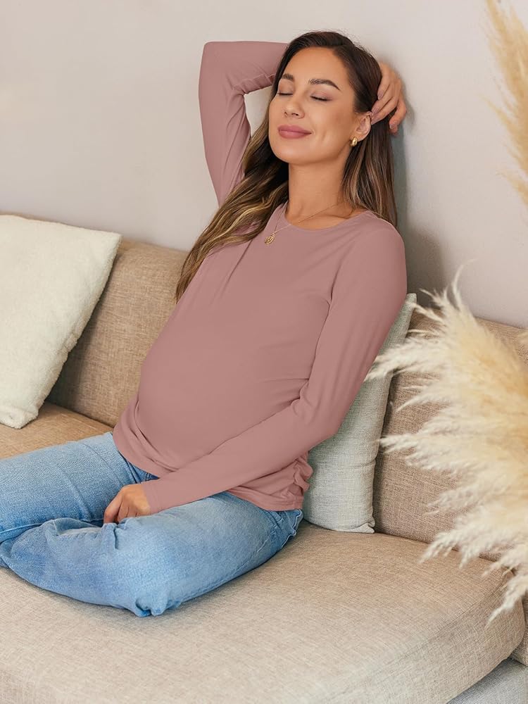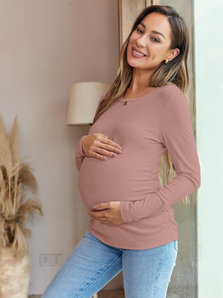 Stretchy Materials: We understand the importance of quality during pregnancy. This maternity short-sleeved top is made of ribbed knit stretchy fabric, breathable, soft, tight fit, and perfect stretch for your whole pregnancy.