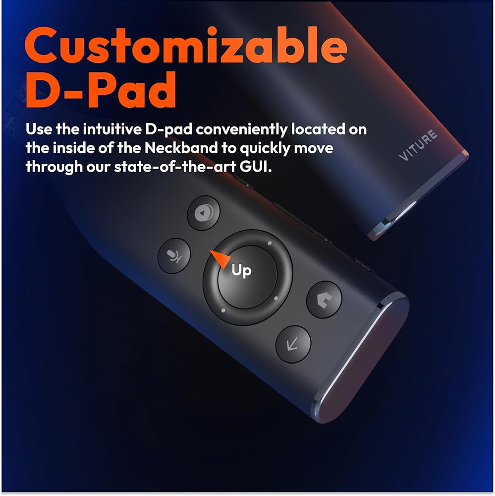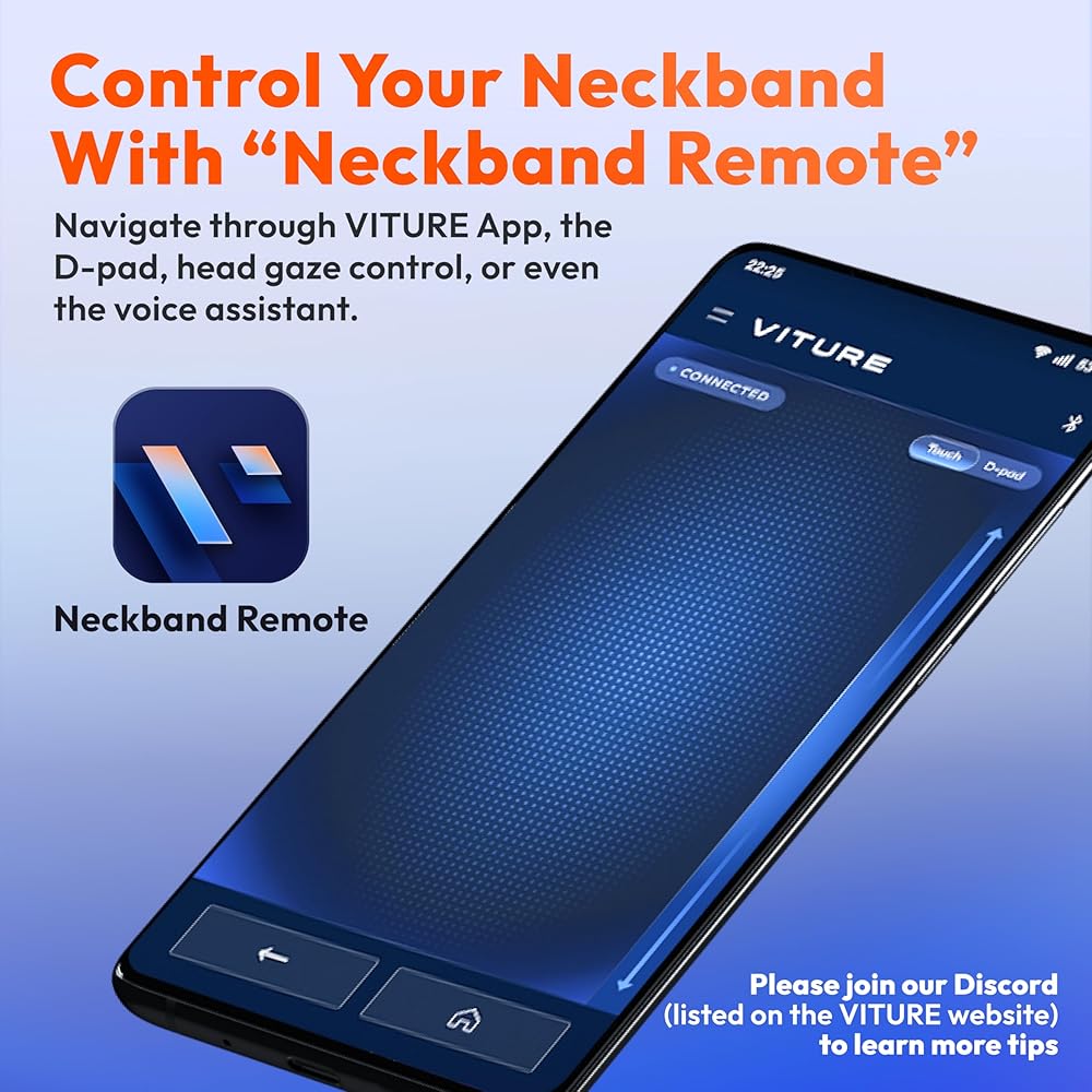 MORE WAYS TO CONTROL: The VITURE App is a companion app that allows you to control the Neckband with intuitive interactions and touch gestures on your smart phone. You can also enter text on your phone and send it to your Neckband automatically, making sign-in a breeze. Available free on iOS and Android.