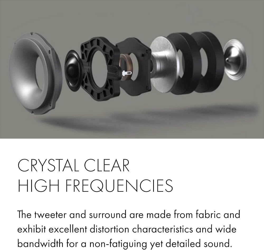 CRYSTAL-CLEAR HIGHS - A 1-inch tweeter carries out high-frequency duties. The tweeter & surround deliver a non-fatiguing, detailed sound. The cabinet walls are thicker & critically braced so you hear more of what you want & less of what you don't.