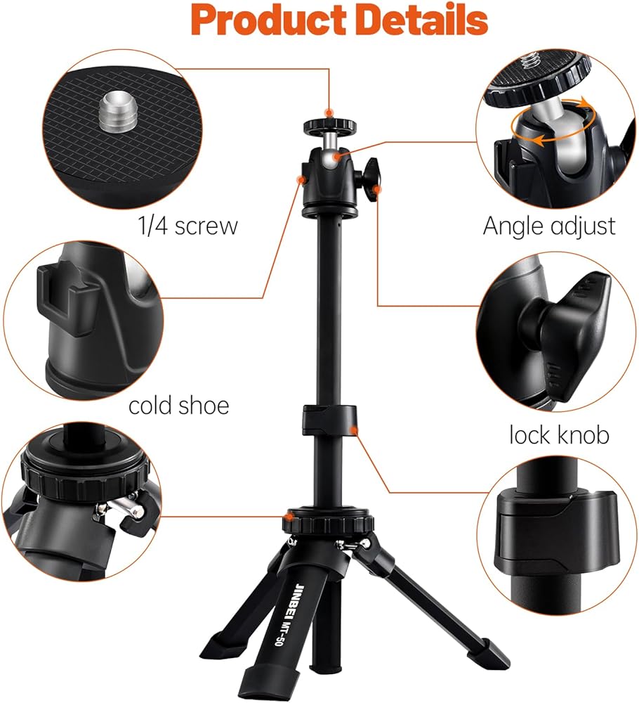 Jinbei Mini Tripod for LED Video Light with 1/4 Screw Mount, Small Vlogging Travel Tripod Adjustable Ball Head, Desk Tripod Stand for Webcam, Handheld Tripod for LED Video Light Digital Camera