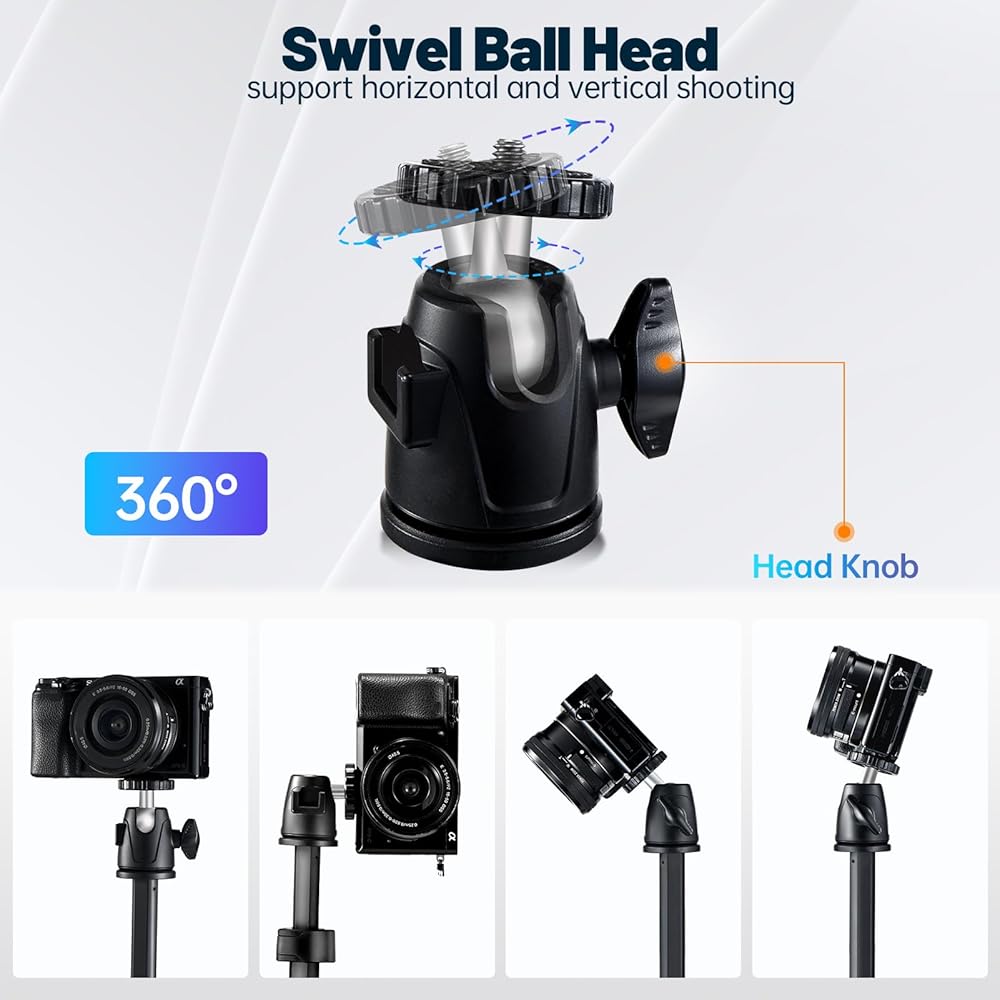 Tripod for Camera with 1/4 Screw Mount, Small Vlogging Travel Tripod Adjustable Ball Head, Desk Tripod Stand for Webcam, Handheld Tripod for Camera LED Mini LED Light Phone
