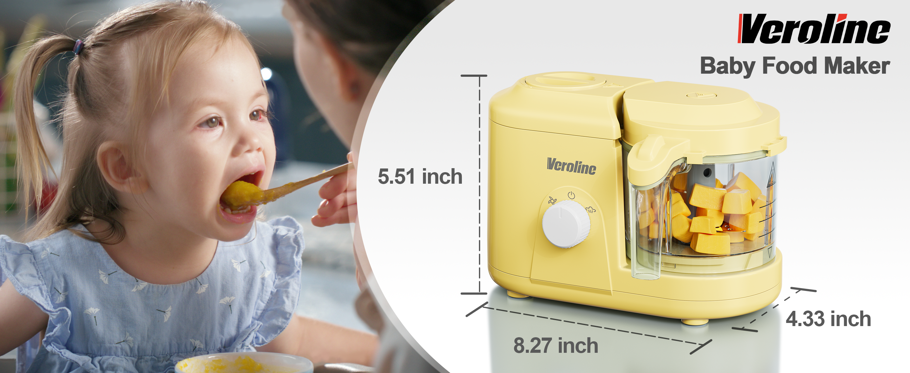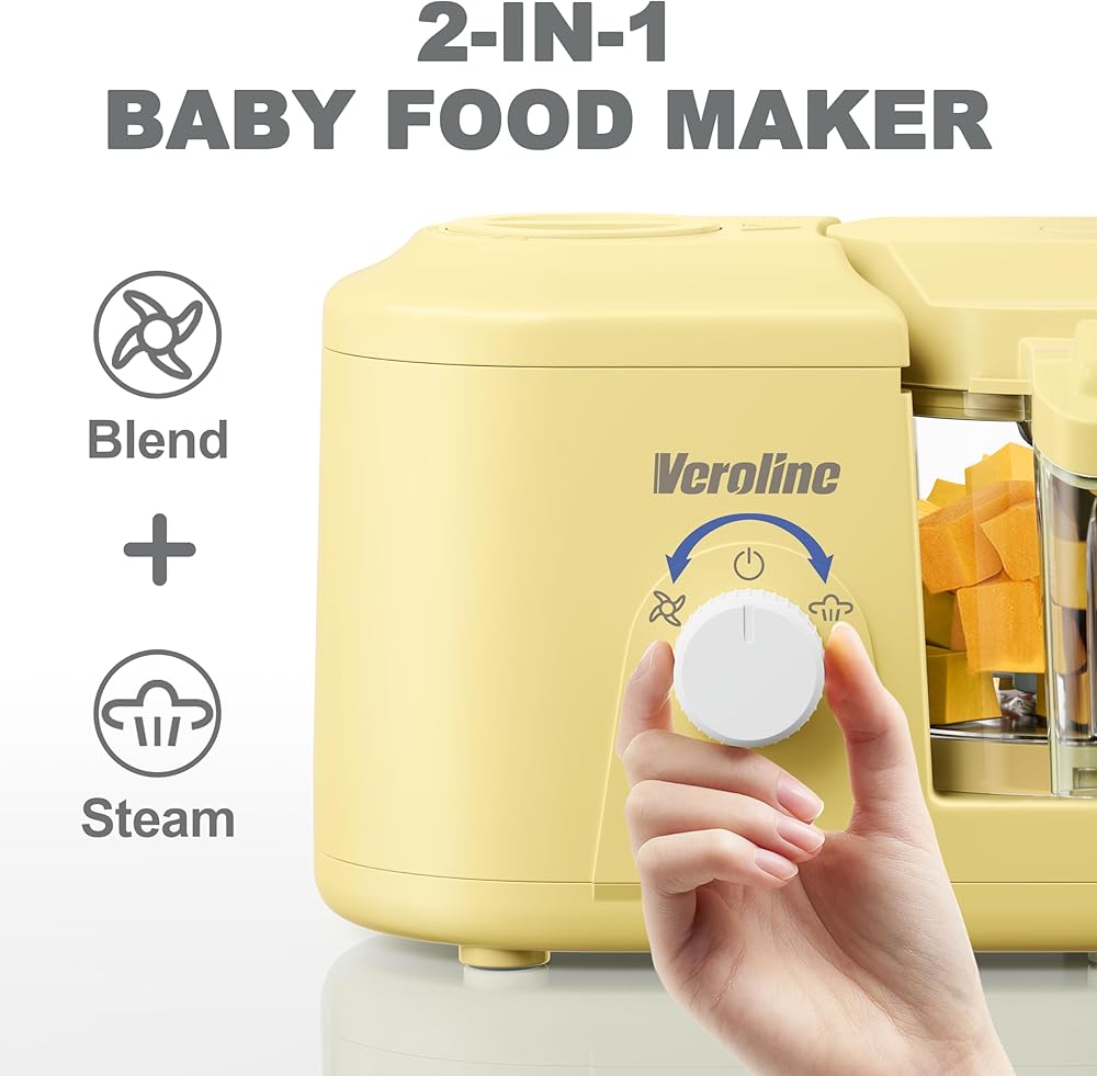 Baby Food Maker, One Button Rotate Control Baby Food Processor, Baby Puree Maker with Steaming and Grinding Functions, Baby Food Steamer and Blender, Yellow