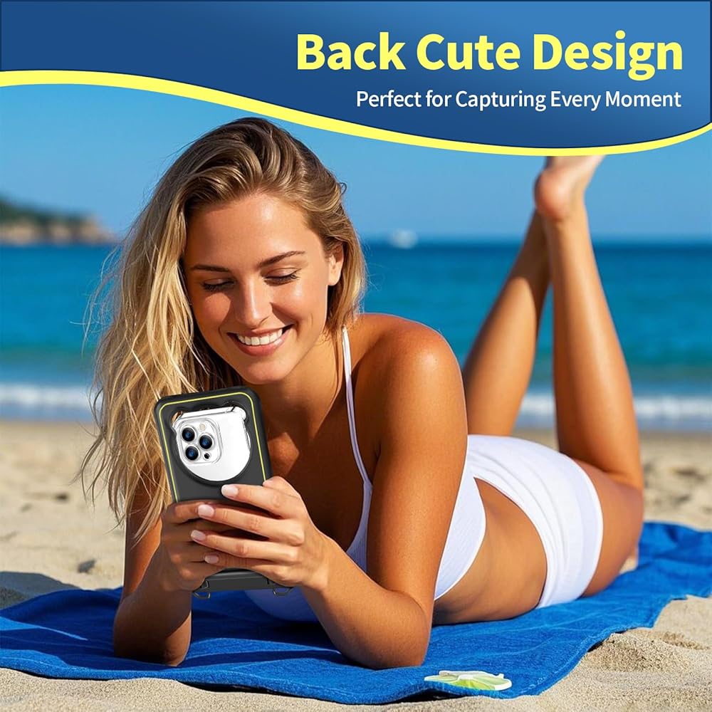 【Double Hook & Adjustable Lanyard & Cute Back】Our waterproof bag features two sturdy hooks for added security and an adjustable lanyard that can be worn comfortably around your neck, across your body, or over your shoulder. The lanyard also helps prevent accidental drops and can be tightened to keep the bag close to your body while in the water. You can capture stunning photos by this waterproof bags with this cute back design, curated to keep your pictures brilliantly beautiful