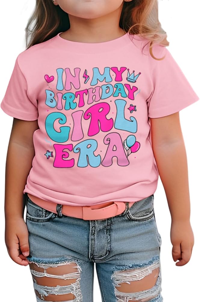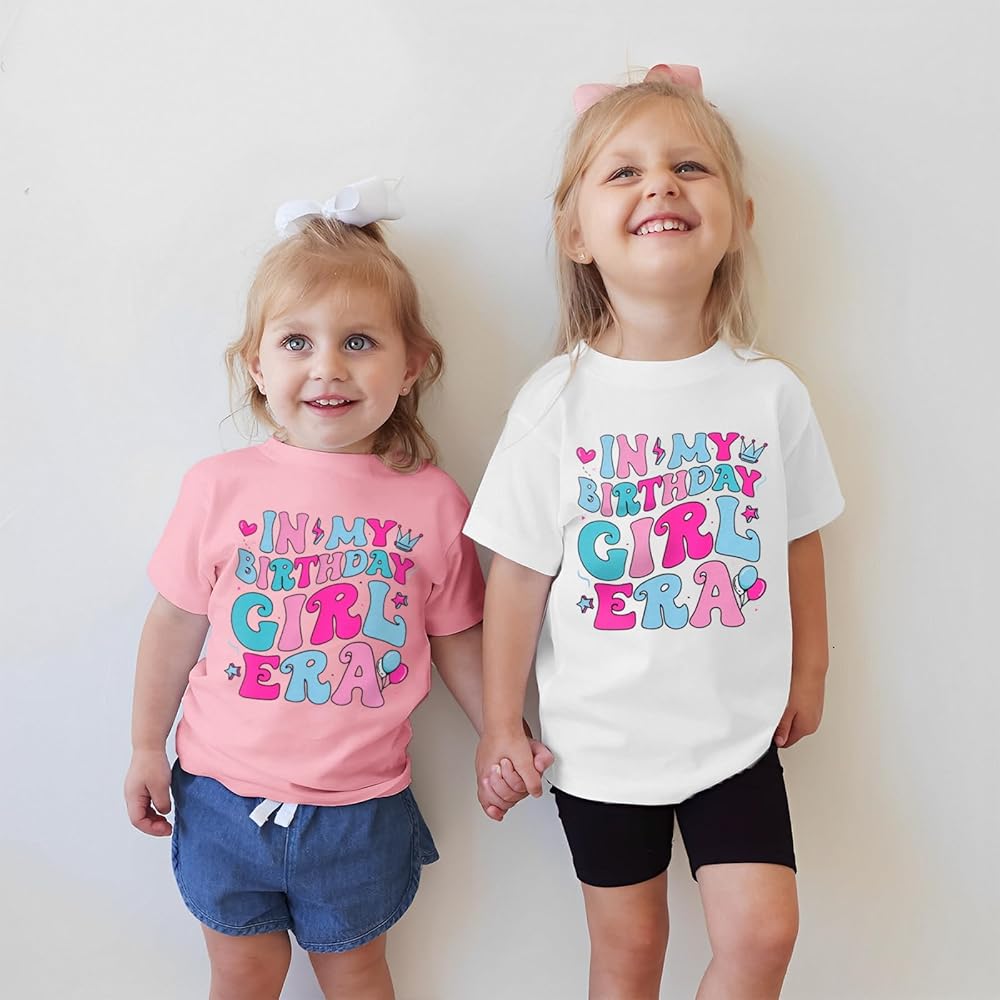【Material】Birthday girl shirt made of cotton blend, great quality and fit, soft and comfortable, no any harm to your baby's skin, excellent quality, breathable and flexible. This basic solid color short sleeve cotton ''In My Birthday Girl Era'' birthday outfits make your baby girl more attractive and adorable!