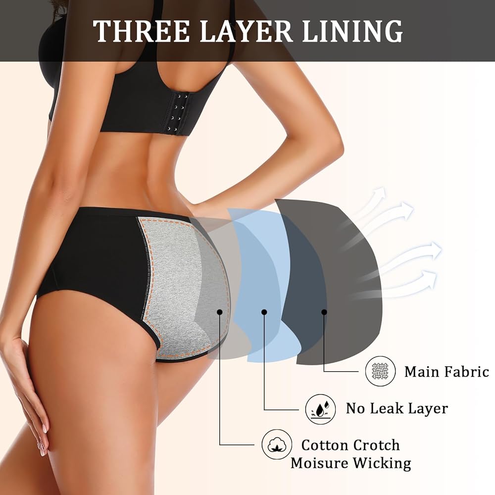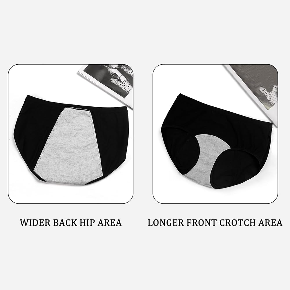 Three Leak-Proof Lining: Designed with three layers for ultimate defense against leaks. The inner cotton lining provides comfort, while the moisture-wicking middle layer keeps you dry. An outer leak-proof layer ensures pants stay clean. Both front and back linings offer comprehensive protection against leaks from pants, skirts, or dresses, preventing embarrassing accidents.