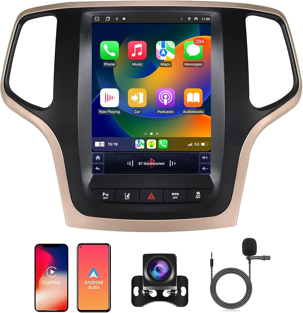 Car Radio for Jeep Grand Cherokee 2014 2015 2016 Radio Stereo Replacement Upgraded 8Core 4+64G with Carplay Android Auto Touch Screen WiFi SWC Bluetooth AHD Backup Camera