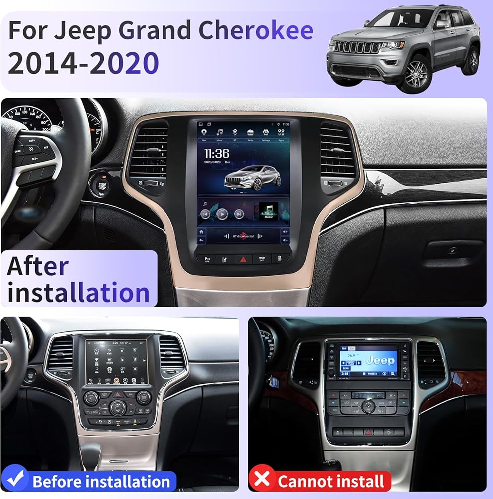 【Applicable Models】This car radio is fit for Jeep Grand Cherokee 2014-2020. 100% standard size.Provide free installation tools for self-installation.If you are unsure if your vehicle model is suitable for installation, simply send us a picture of your car's central control before purchasing. Our engineers will promptly confirm and reply to you.