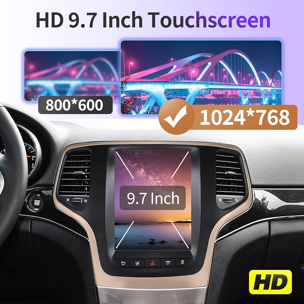【High Configuration】UPGRADED Android 14 system, 8 Core CPU+4GB RAM+64GB ROM enhance fluency. With a 1024*768 resolution, it offers a super crisp display. Supports snappy and responsive for a smooth user experience. The plug-and-play Jeep Grand Cherokee radio.