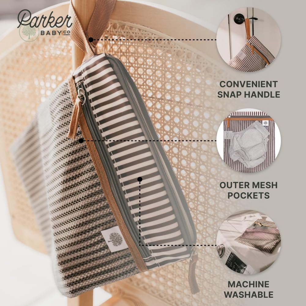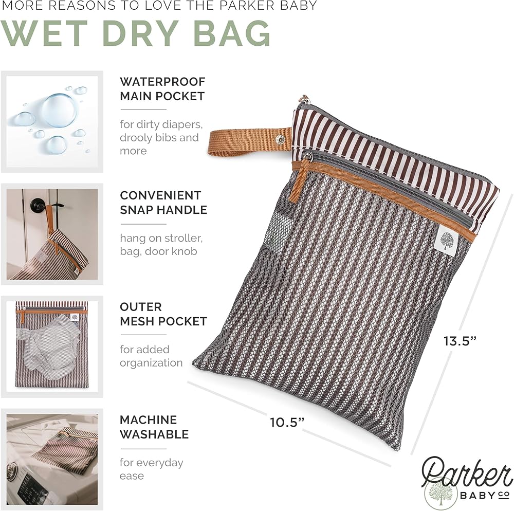 Parker Baby Cloth Diaper Wet Dry Bag - Waterproof Reusable Diaper Bag Accessory with Mesh Organizer and Zippered Pocket for Soiled or Wet Clothes, Diapers, Wipes, Swimsuits
