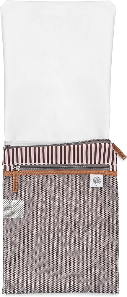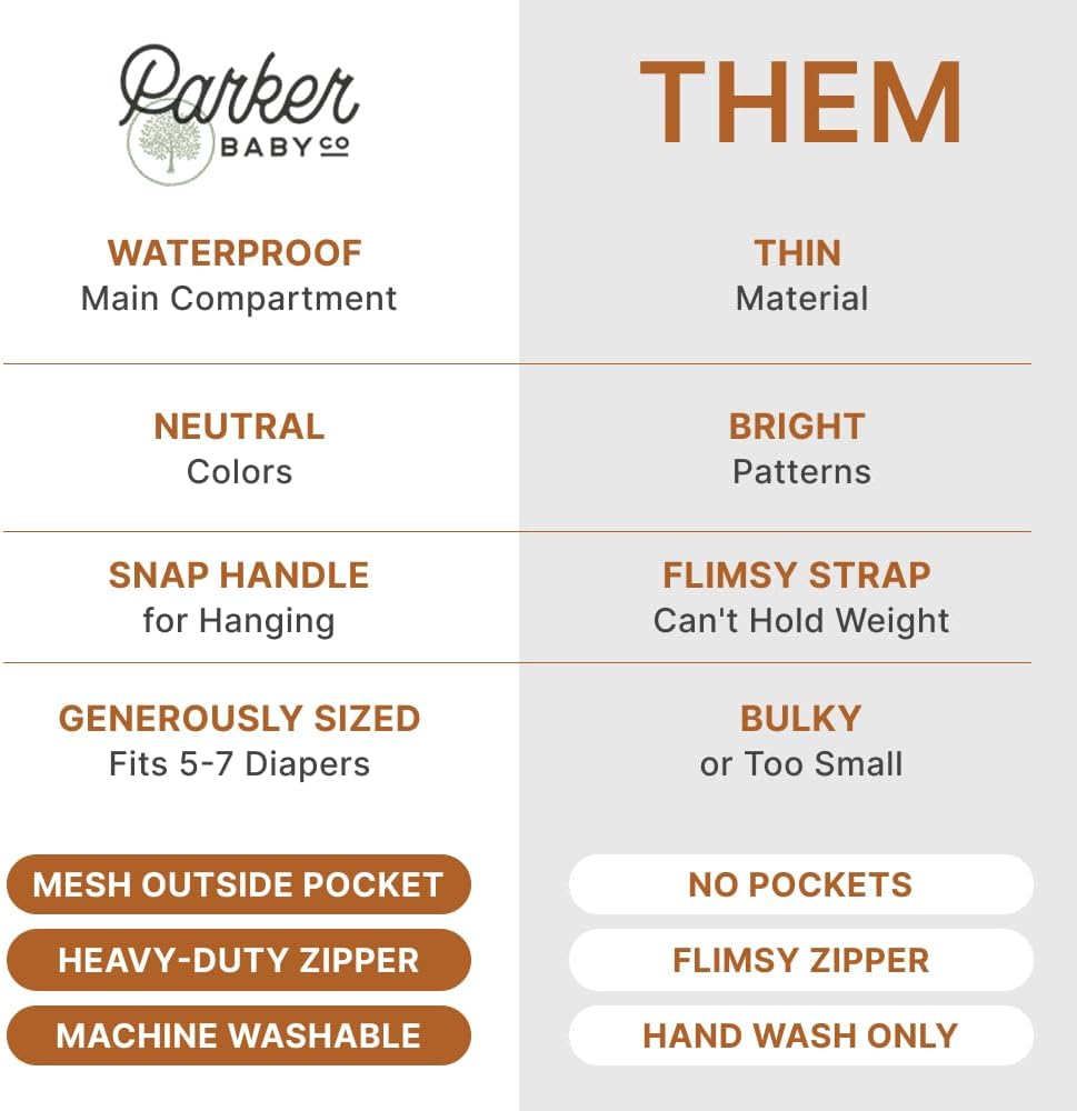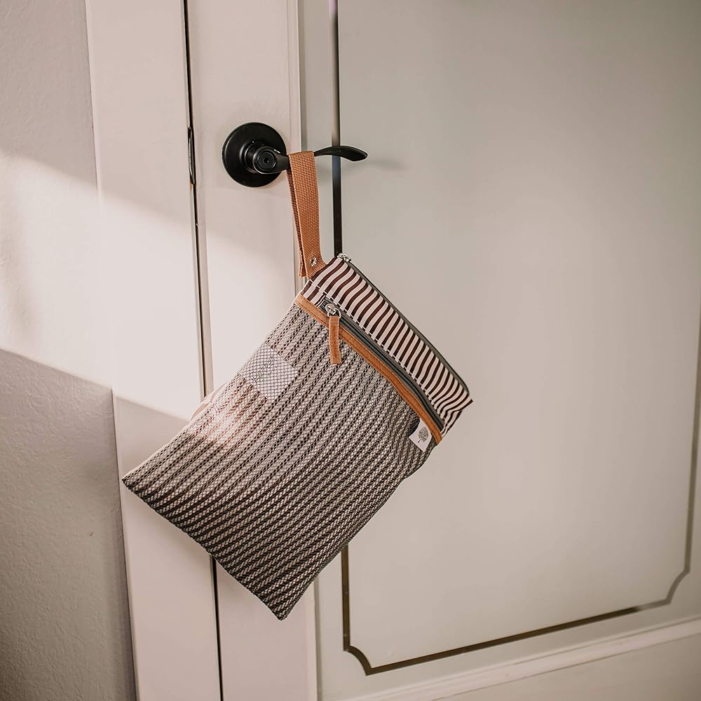 STYLISH AND VERSATILE DESIGN: Our Parker Baby Wet Dry Bag seamlessly combines style and functionality. Its gender-neutral design matches perfectly with our Birch Bag Diaper Backpacks, making it a chic addition to your parenting essentials. The generously sized 13.5 x 10.5" waterproof pocket is perfect for organizing up to 7 diapers, ensuring no leaks thanks to its PEVA lining. Whether for cloth diapers or wet swimsuits, this bag is a versatile accessory for any occasion.