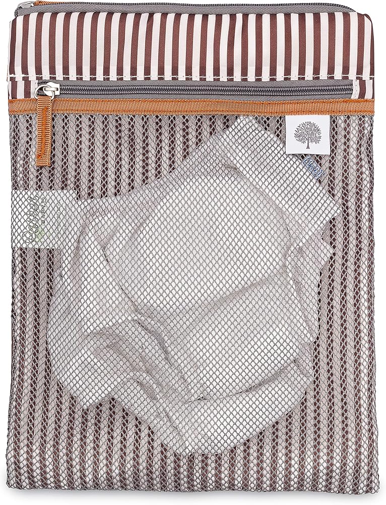CONVENIENT AND PRACTICAL: Our wet/dry bag features a sturdy, heavy-duty zippered pouch that keeps soiled items securely contained. The additional mesh organizer is perfect for clean items like reusable breast pads, pump parts, and wipes, ensuring everything has its place. The adjustable buttoned handle easily snaps onto strollers, car seats, or diaper bags for quick access, making it an indispensable tool for busy parents on the go.