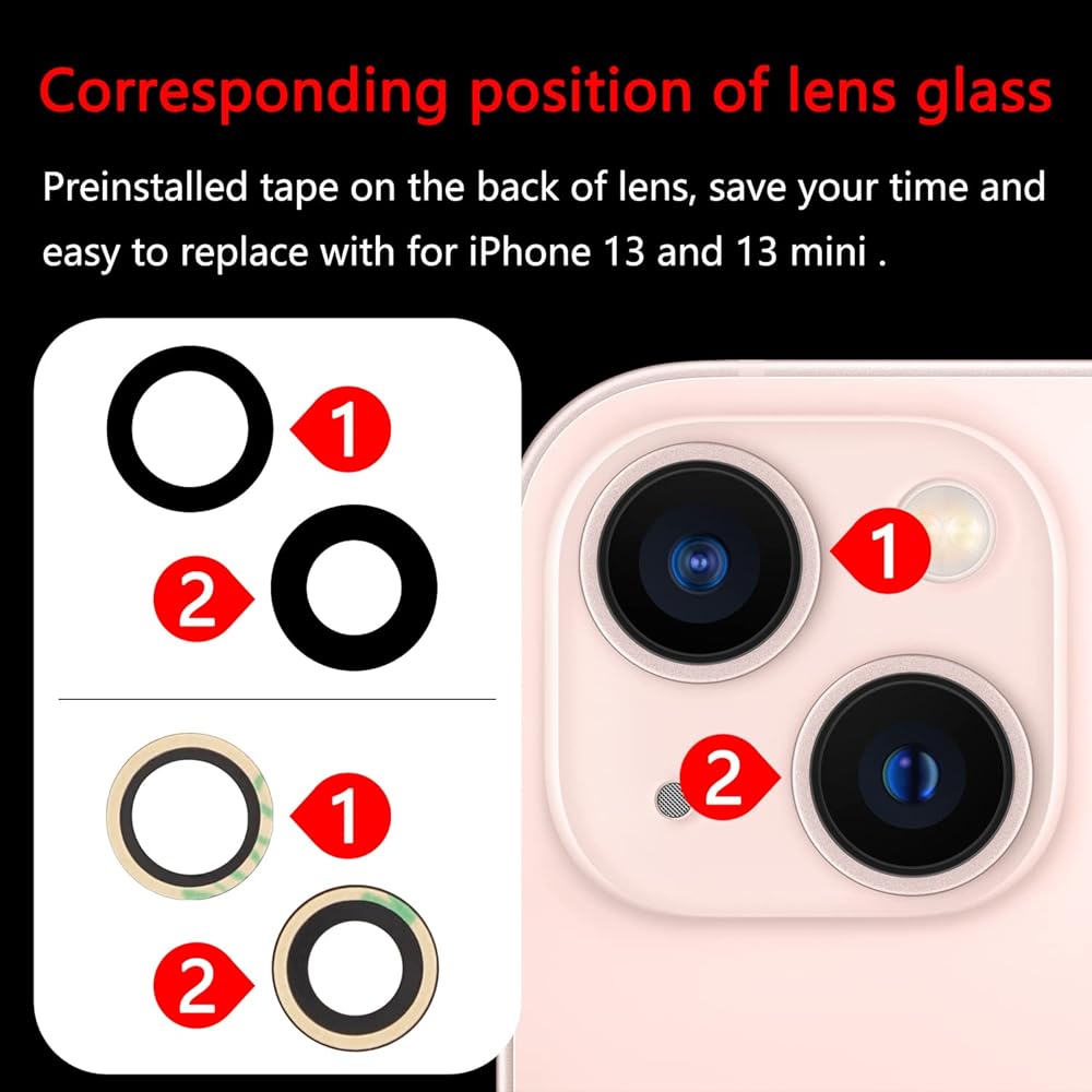 【100% original lens with anti-fingerprint layer】100% brand new camera lens glass replacement for iPhone 13 & iPhone 13 mini All Carriers. Not for iPhone 13 Pro & iPhone 13 Pro Max. Same as the OEM with an anti-fingerprint layer on the surface which can effectively prevent fingerprints or oil stains from getting on the lens. The non-blue polarized lens will not cause bluish and chromatic aberrations in photos. After replacement, the high light transmittance will make your photos clear again.