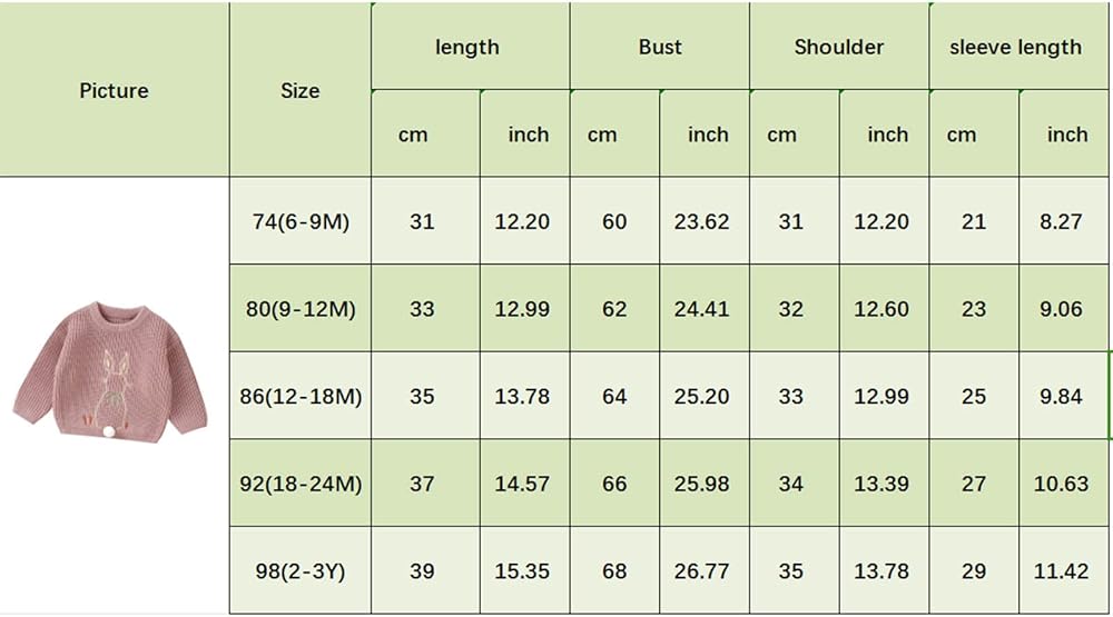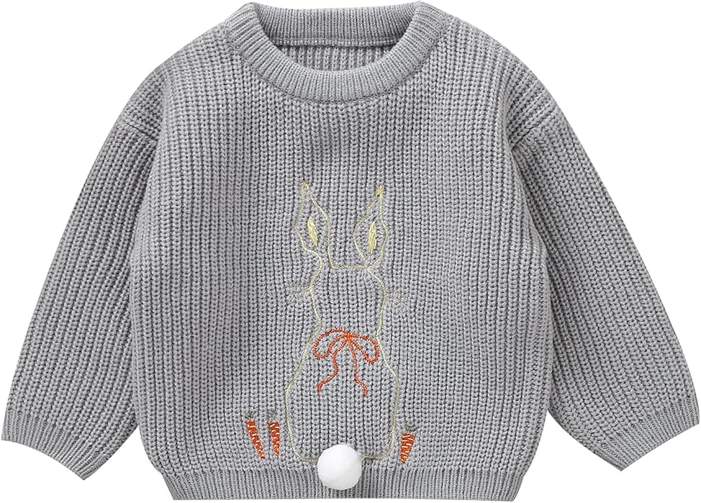 - Design: Infant baby girls easter outfits, baby girl easter sweater top, long sleeve, cute bunny embroidery design, crewneck knitted pullover sweaters, casual style, cute and cozy to wear.