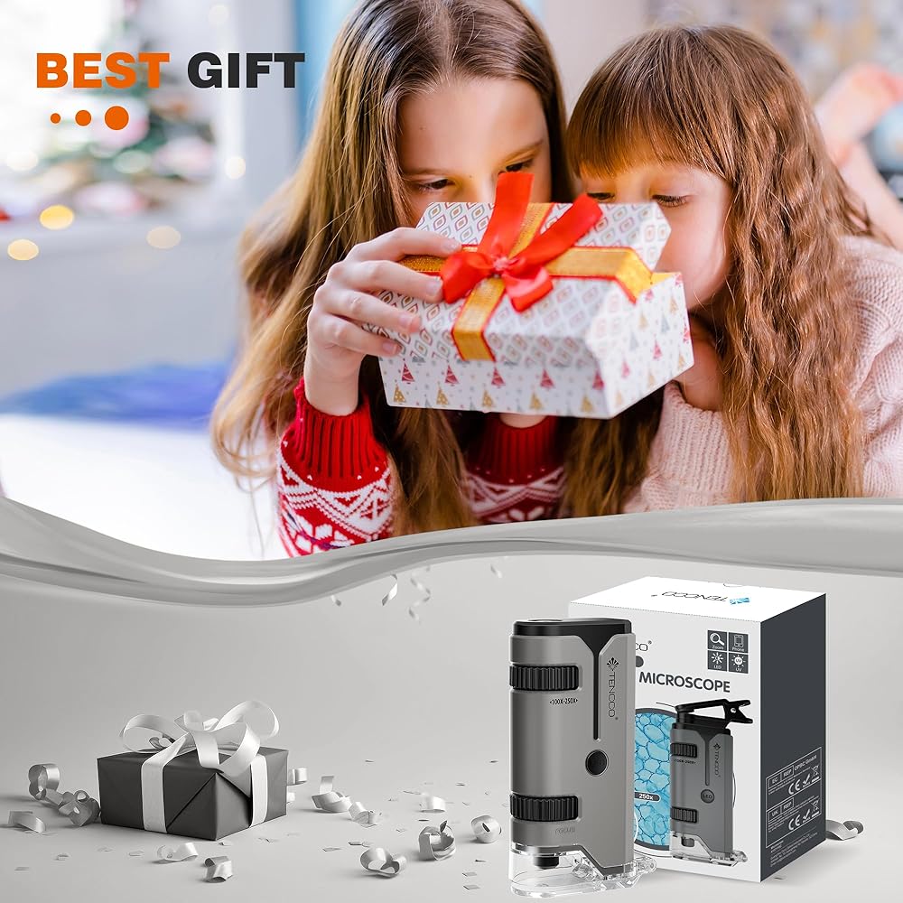 【Science Microscope Gifts】The 100x-250x mini pocket microscope is suitable for kids/little scientists/students to learn biology, outdoor nature exploration, mini labsters science hobbies, also suitable for adults to observe coins, banknotes, stamps, hair, microscope slides, jewelry.