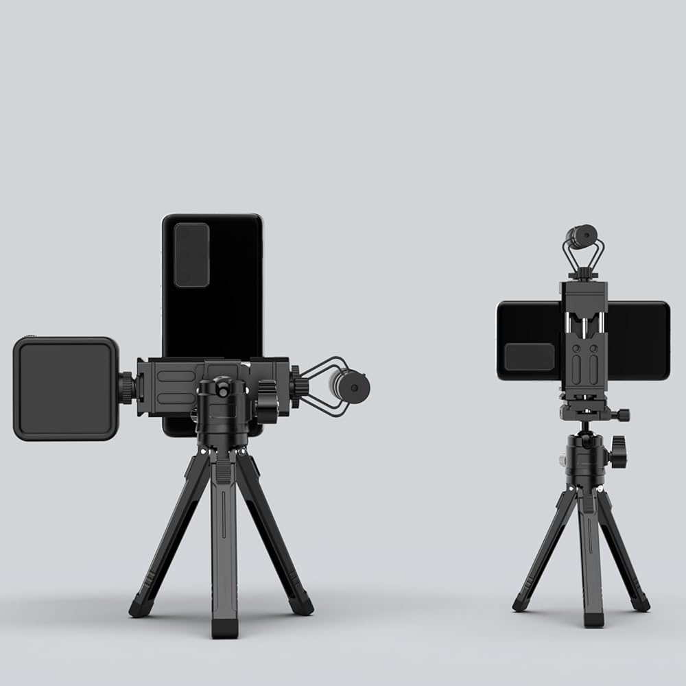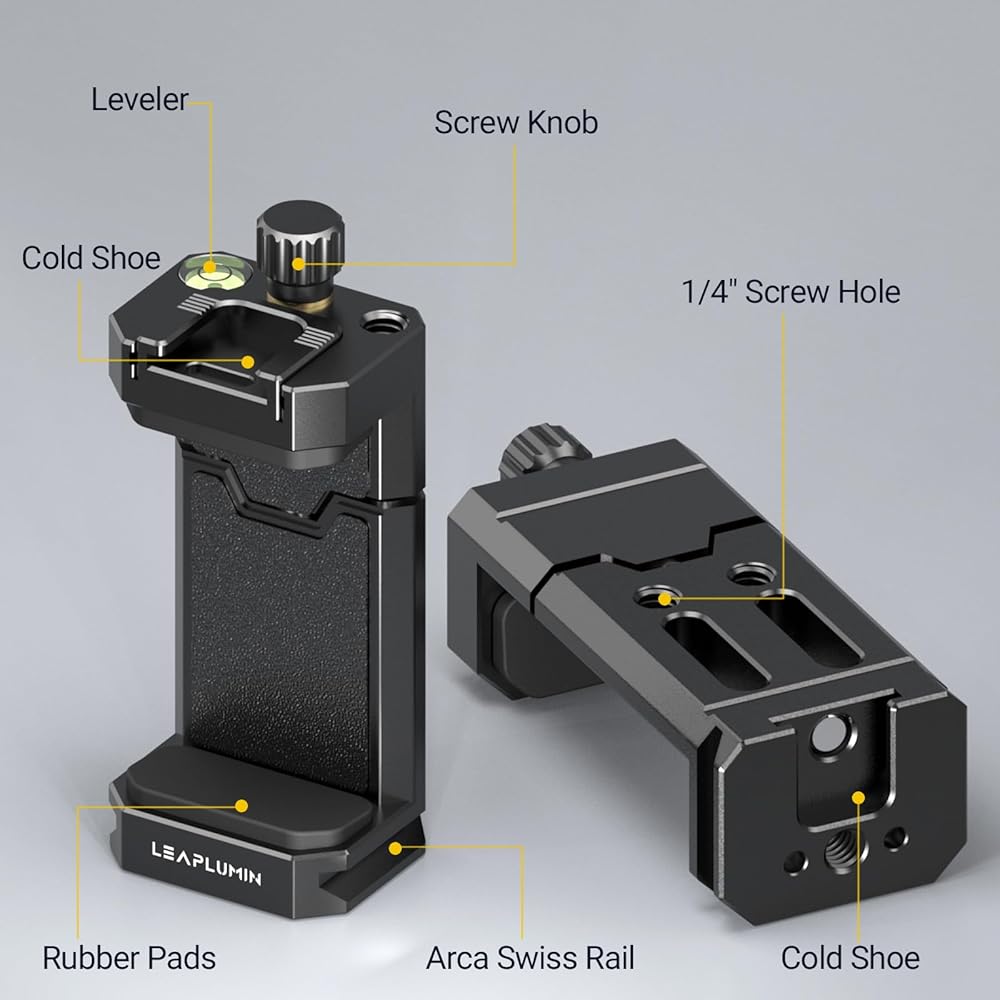 [Unparalleled Expandability] – Leaplumin HY-A1 Phone Tripod Mount offers unparalleled expandability by providing 4 1/4 inch screws to connect magic arms and 2 cold shoes to attach LED light panels or microphones.