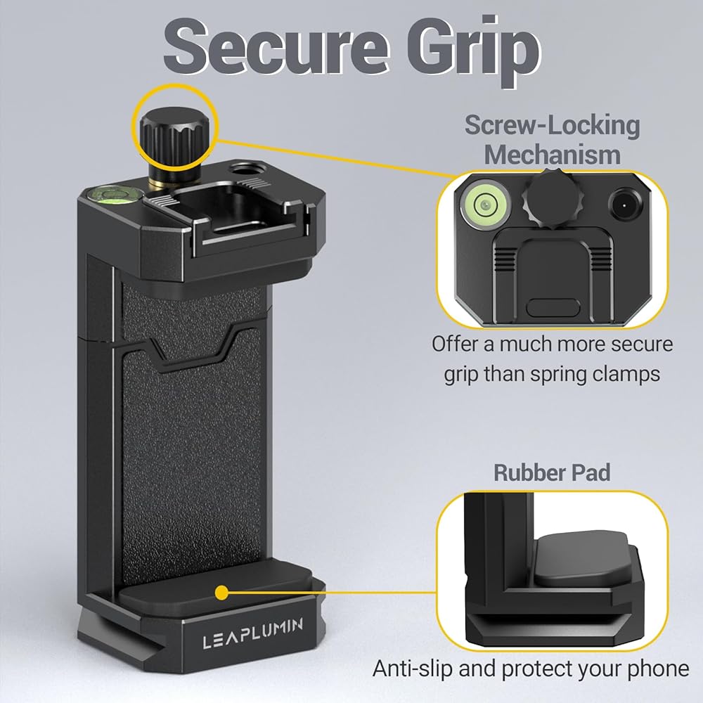 [Full Aluminum Alloy Design] – Made with premium Aluminum Alloy to provide incomparable durability for daily use. The screw-locking design offers a much more secure grip than the spring clamp.