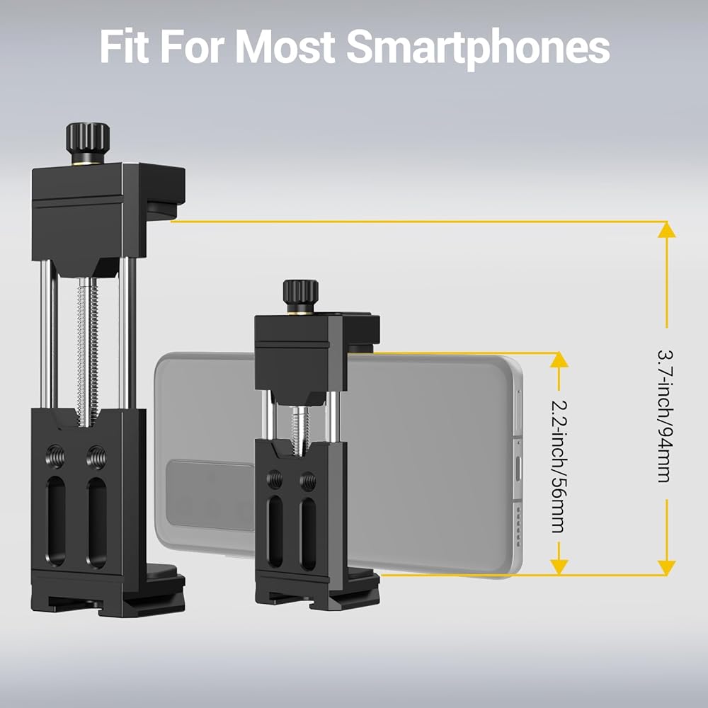 [Universal Compatibility] – Extendable length from 2.2 inches to 3.7 inches, the cell phone mount is compatible with most smartphones including iPhone, Samsung Galaxy, Google Pixel, Sony Xperia, OnePlus, Moto, Xiaomi, etc.
