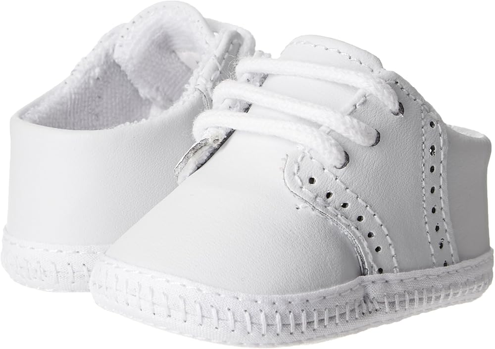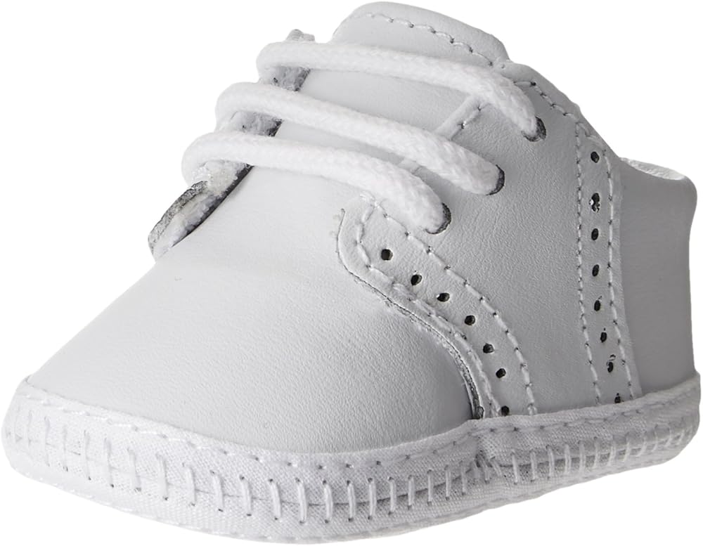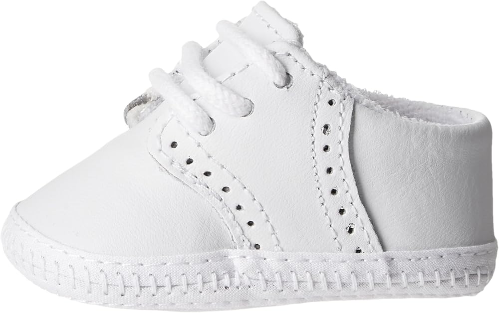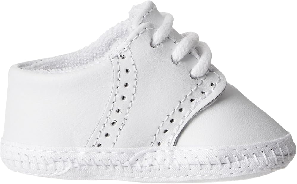 Your little man needs the classic look of the Baby Deer leather saddle oxford! Smooth leather upper with broguing detail. Lace-up closure. Oxford silhouette. The perfect addition to bring your newborn home in or even as a baby shower gift.