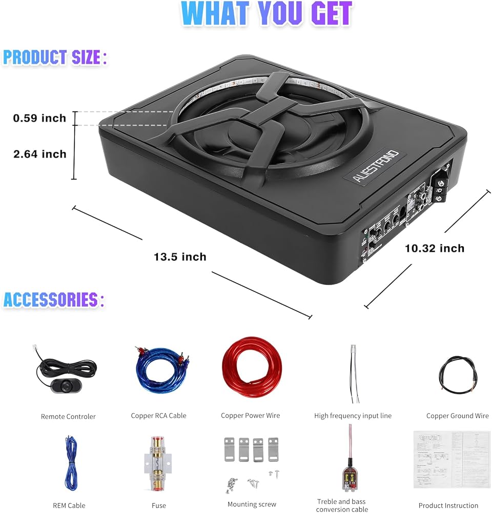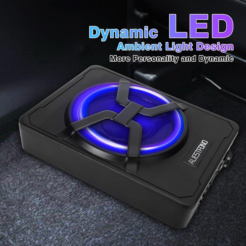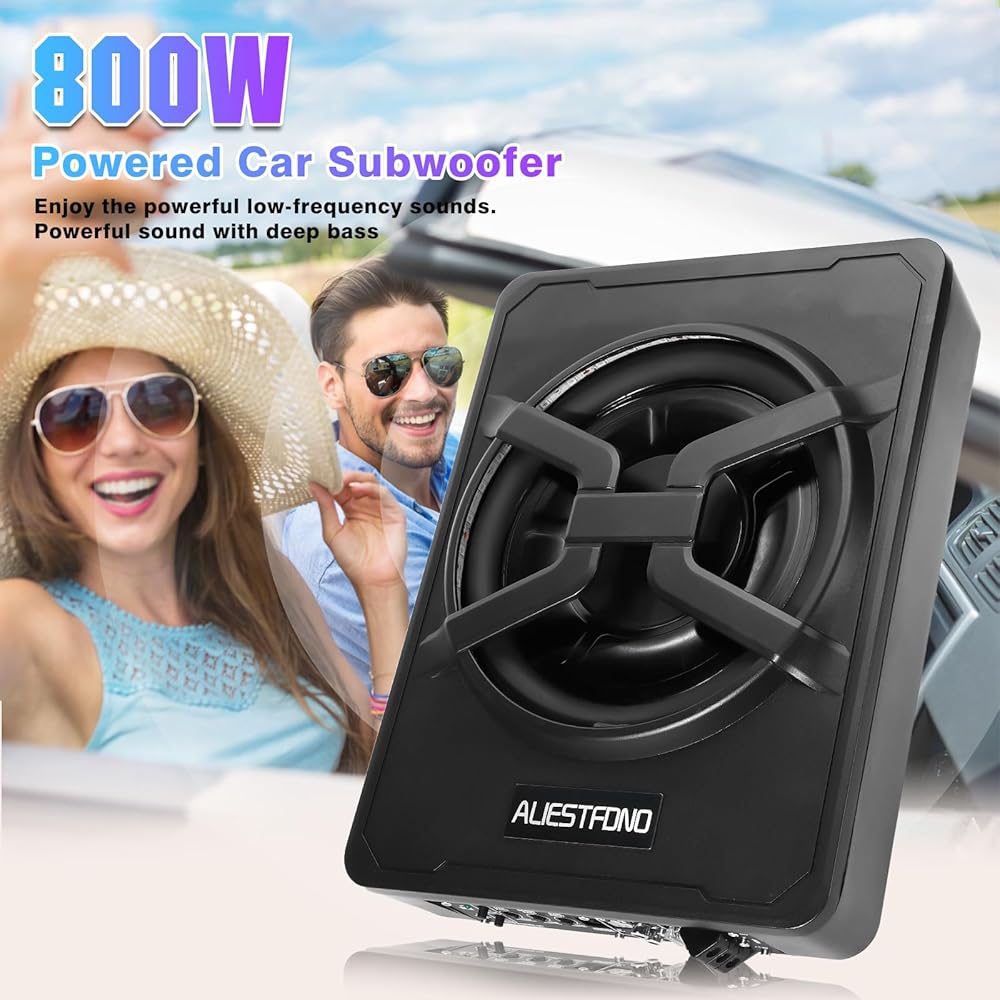 【10" 800w Slim】: Under-Seat Powered Subwoofer Car Audio, Amplifier built in,The Shell Made of cast aluminum, with fast heat dissipation, reliable performance.