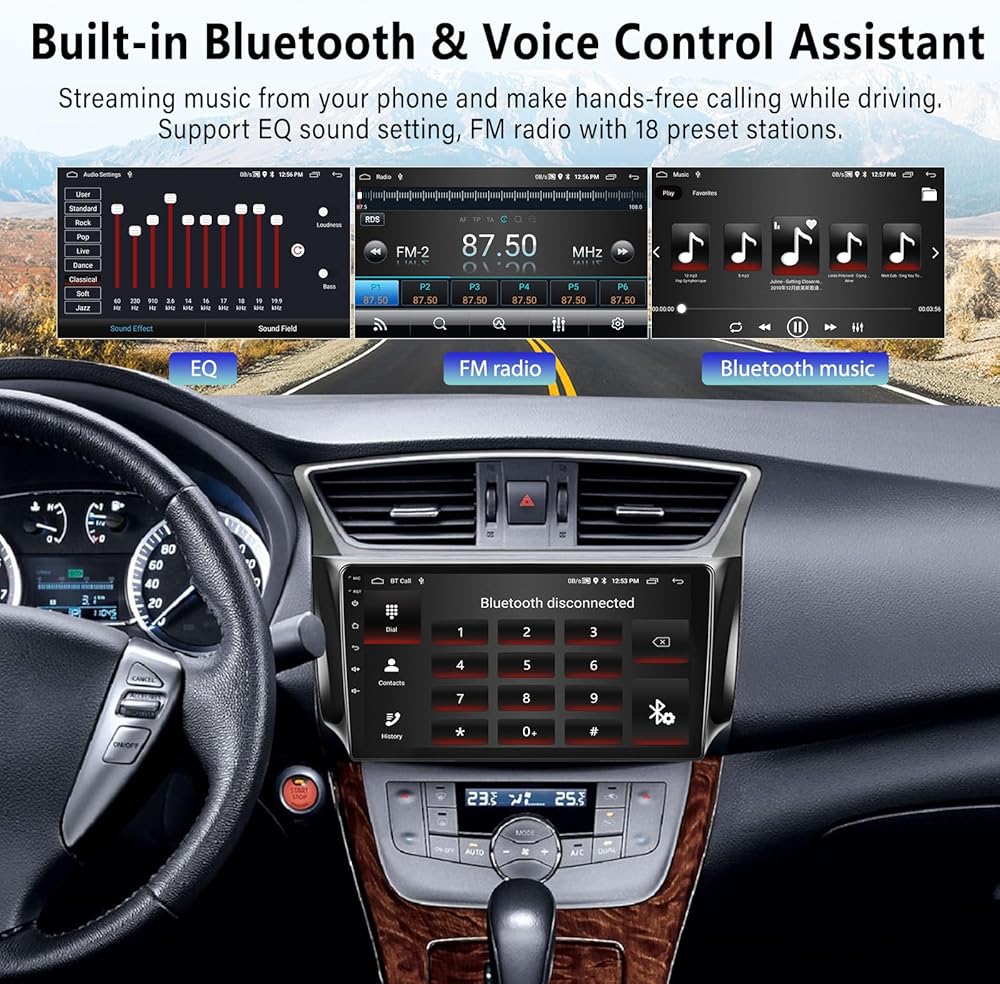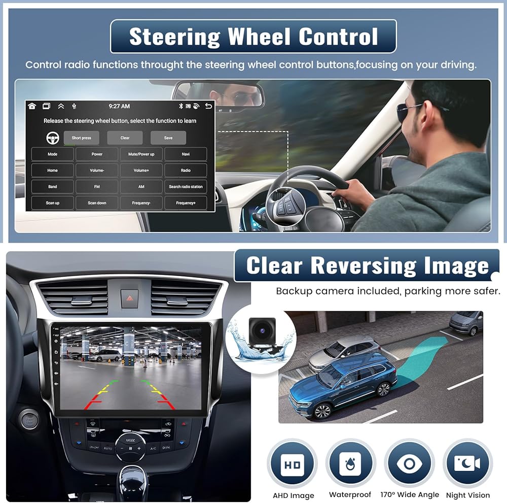 【for Nissan Sentra Radio with Wireless CarPlay & Android Auto】For Nissan Sentra 2013 2014 2015 2016 2017 radio, the Android car stereo supports wireless Apple CarPlay and Android Auto, you can voice control to access the phone calling, GPS navigation, video, music adn emails etc. The 10.1 inch touch screen car stereo support wireless/wired carplay and wired Android auto. Quad core with 2GB RAM, 64GB ROM storage. Mirror link for Android/iOS phones to sync the phone's screen on the head unit