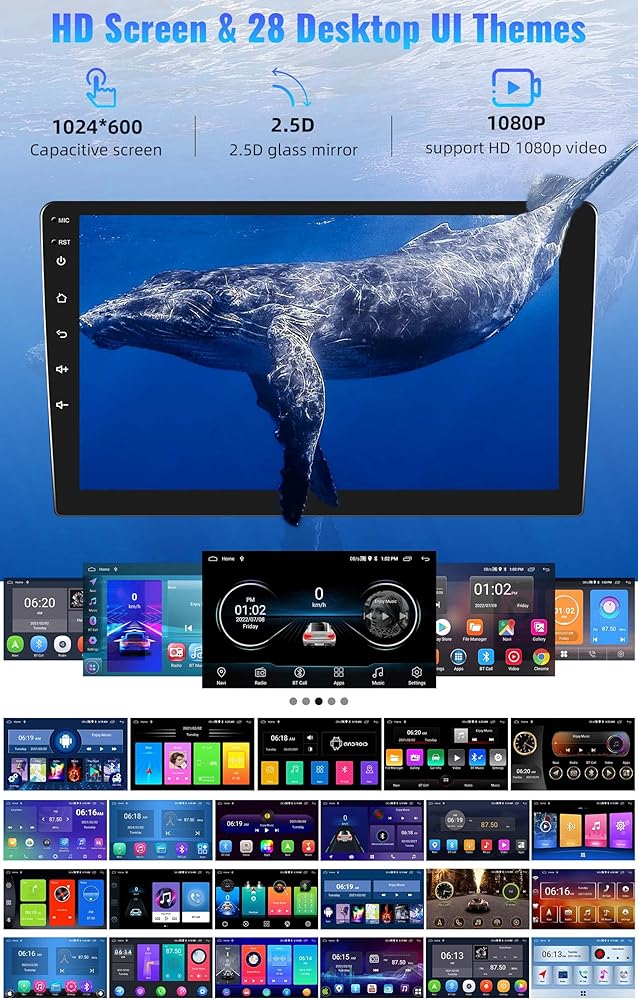 【Backup Camera & SWC】 The android car stereo with a AHD backup camera, the 10.1 inch larger touch screen head unit will automatically switch to the reversing image when you put the car to rear gear. Parking with clear reversing image, guideline, and night vision, waterproof and viewing angle backup camera. The steering wheel control function can easily switch the radio channel, radio volume and radio songs, and keep safer during your driving