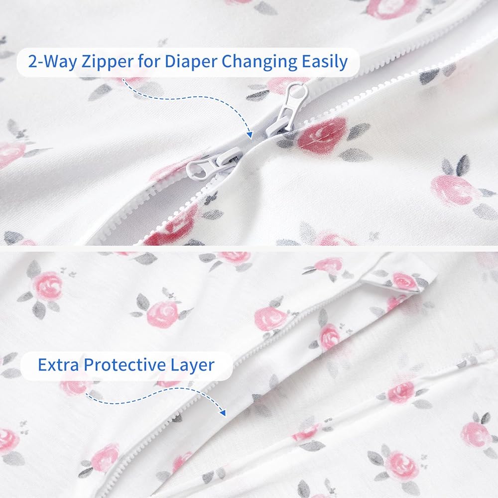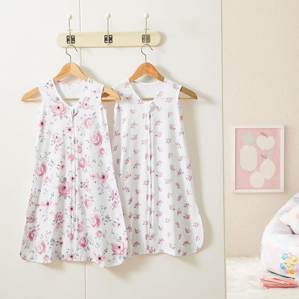 PHF 2 Pack Baby Wearable Blanket 12-18 Months, Rayon Derived from Bamboo, Ultra Soft TOG 0.5 Baby Wearable Blankets with 2-Way Zipper, Large Size, Floral