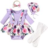 ❤Package - 3PCS baby girls' clothes set 1* short sleeve ruffled romper with floral suspender skirt, 1* bow knot headband, 1* floral sunhat