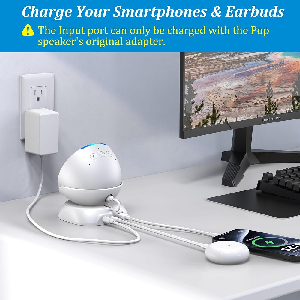 【Wide Compatibility】 The stand is compatible with Pop. It can also charge your smartphones, earbuds, smartwatch and more. The holder is equipped with USB-C and USB-A ports, enabling you to charge two devices simultaneously. (Not have built-in battery, powered by power adapter. Only a desk stand, do NOT include the device, cables or adapter)