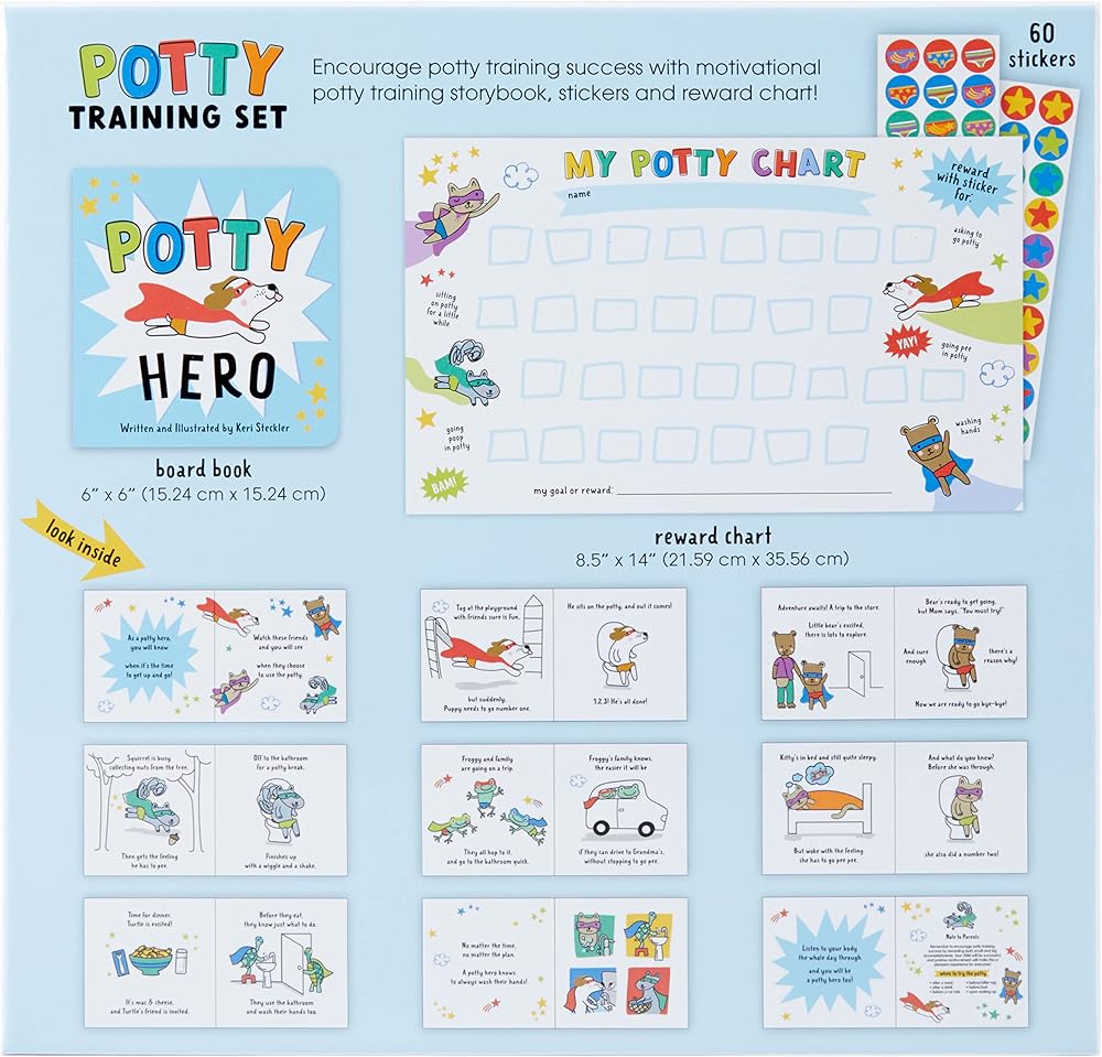 Featuring adorable and fun art by Keri Steckler, this set of potty training accessories is a must-have to help your little one feel like a potty hero!
