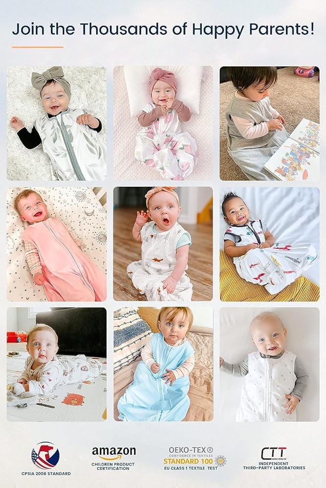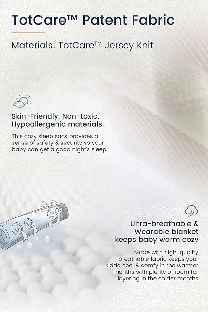 • 🏆SAFE & SOUND: Totaha sleep sacks are designed for your baby's safety and comfort. Made from our patented TotCare jersey knit fabric, they meet Consumer Product Safety Commission (CPSC) standards. With every wash, our fabric becomes softer and more pliable, gently molding to your little one's skin. Tested through 10,000+ washes with no deformation, shrinking, or fading, and resistant to wrinkles. Enjoy durable, long-lasting use: Wash, use, and love it!