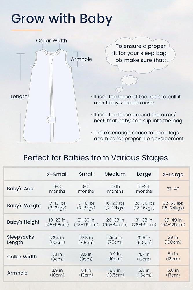 • 😊AMPLE SPACE FOR COMFORT: The Totaha light, stretchy, and silky 0.5 TOG sleep sacks, designed for toddlers aged 2-4 years, combines comfort with safety. Featuring a snug neckline and extra-long design, this sleeping bag supports natural hip development while preventing slipping. The loose leg area allows for unrestricted movement, ensuring your child sleeps comfortably. With a 1.0 TOG rating, this sleep sack provides a secure and cozy fit, adapting as your toddler grows for a restful night's sleep.