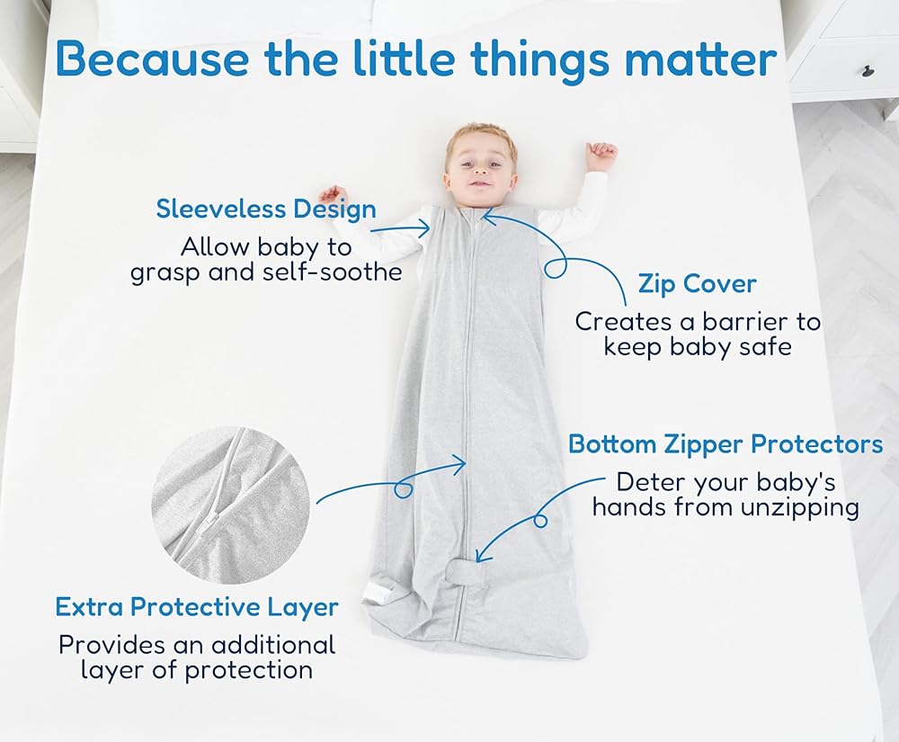 • 🔗Kid-Safe Zipper Design: The Totaha 0.5 TOG Sleeping Bag features a smooth two-way zipper, making diaper changes a breeze even in the middle of the night. Compared to other options, our sleeping bag includes a chin guard and comprehensive zipper guards along the path and at the bottom to prevent direct contact with your toddler's skin. This thoughtful design ensures maximum comfort and protection, giving you peace of mind that your little one will stay comfortable and safe all night long.
