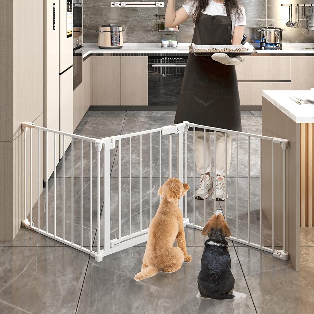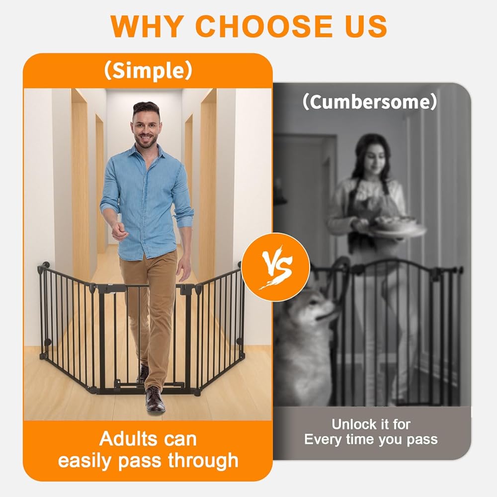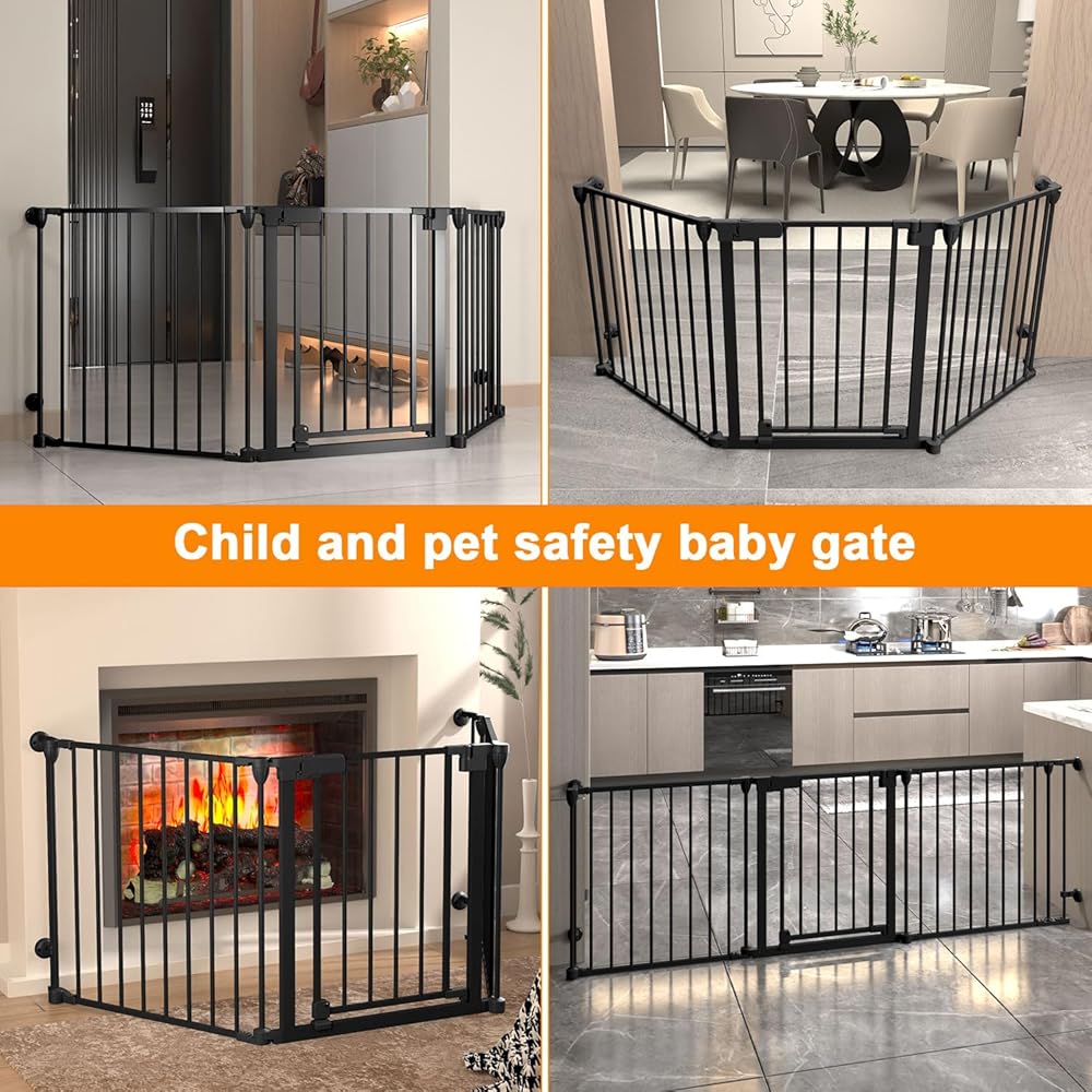 33-80Inch Extra Wide - 25.6inch tall:wide and height of the dog gate with door are very suitable for installation in angleto use around fireplaces, grills, wood burning stoves, Christmas tree openings, doors, hallways, stairs,houses,kitchens,laundry rooms, Bedrooms, and playrooms