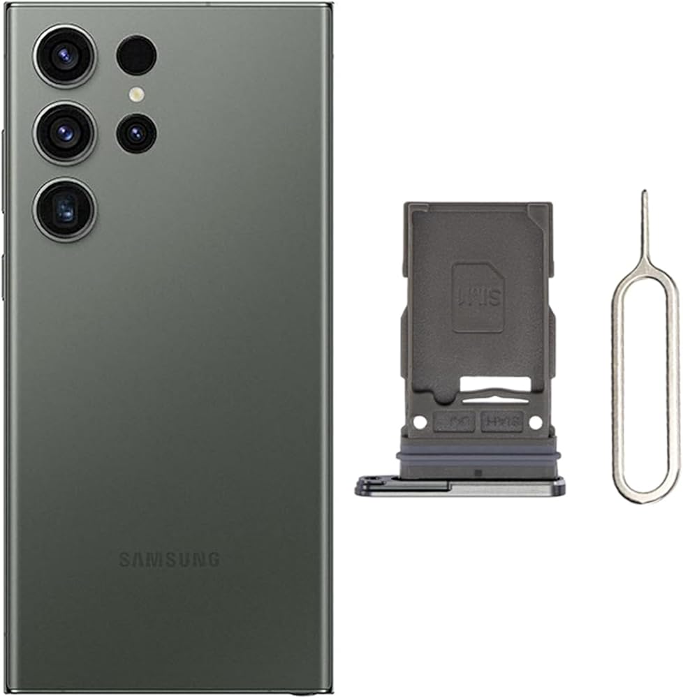 for Samsung Galaxy S23 Ultra Single SIM Card Tray Card Holder Slot Replacement Parts + Open Eject Pin (Green)
