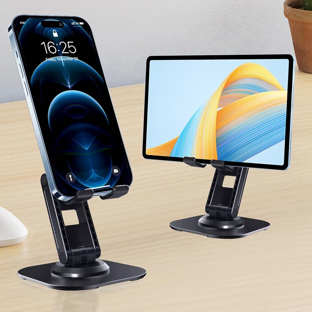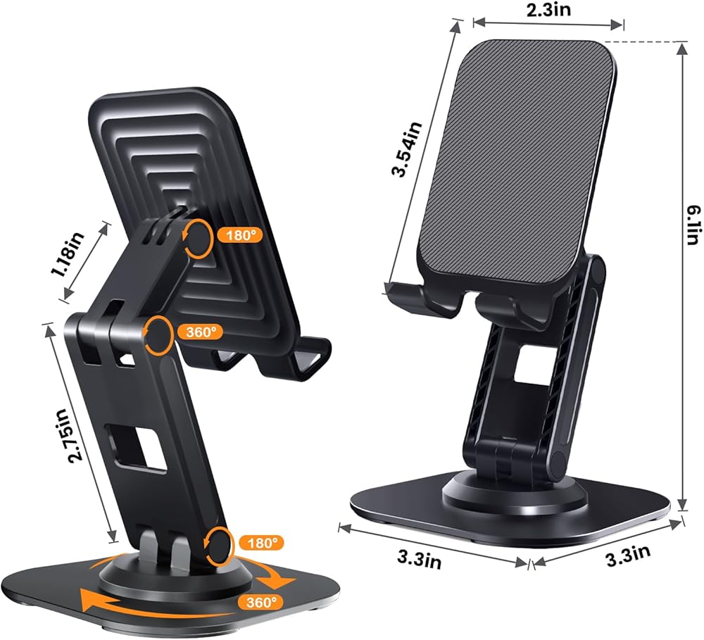 2PCS Cell Phone Stand, 360 Degrees Rotation Multi-Angel Adjustable Fully Foldable Compatible with iPhone 15 14 13 Pro Max Android Smartphones(Black&Black)