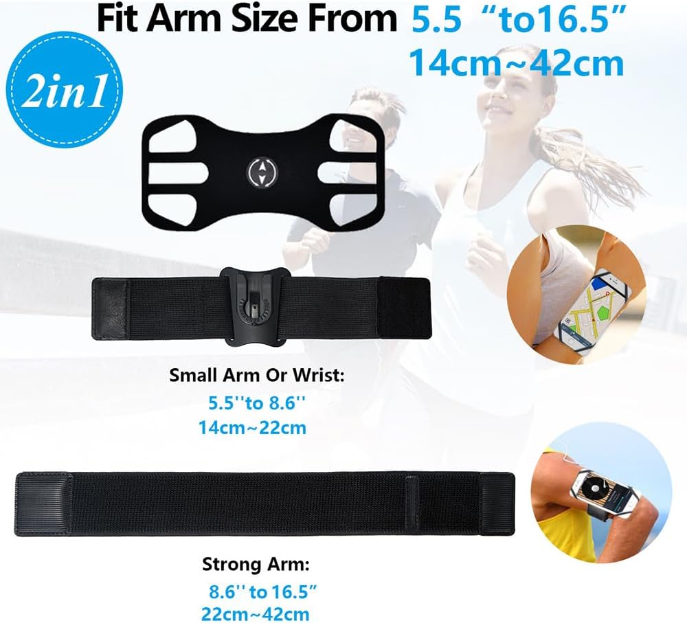 Running Armband Phone Holder, Arm&Wrist Phone Holder with 2 Different Lengths Strap Fit for Men Women Keep Your Phone Secure, Separable 360°Adjustable Phone Armband for Workout Running Jogging