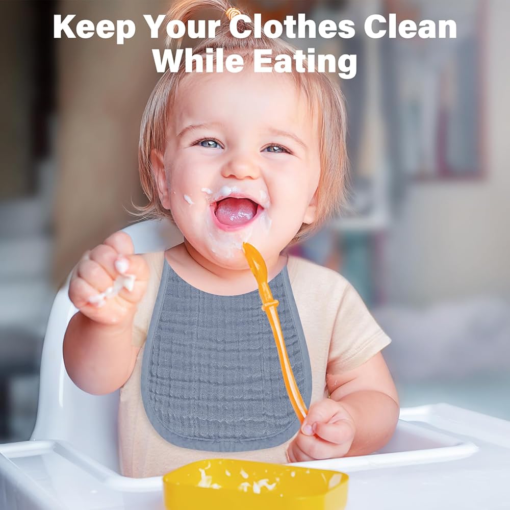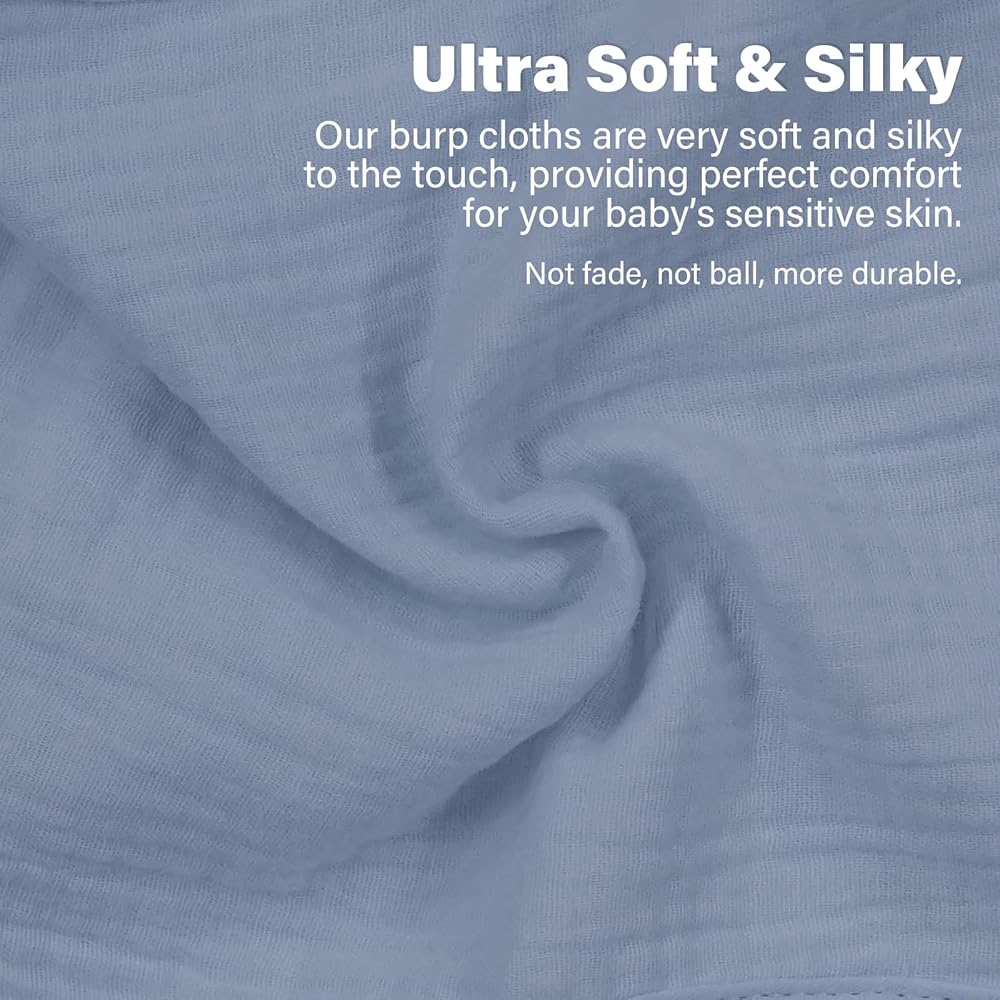 Soft & Cozy: These burp cloths are made of 4 layers of 100% cotton tulle for maximum water absorption and a skin-friendly soft touch. The softest and super absorbent cotton material, offering unmatched quality and extreme softness for a gentle touch on your baby's delicate skin.