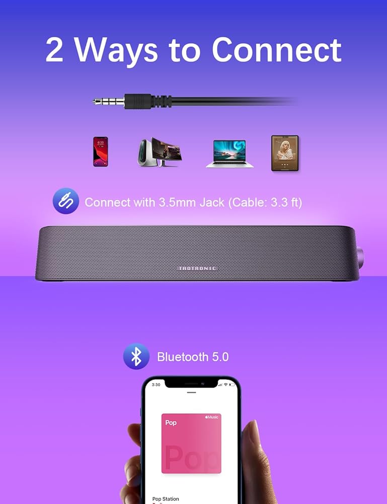 【2 Connection Methods】Along with the Bluetooth 5.0 and 3.5mm Aux wired connections, Nylavee desktop speakers are compatible with most devices, such like laptops, desktops, PCs, monitors, phones, tablets, Xbox, PS5, etc.