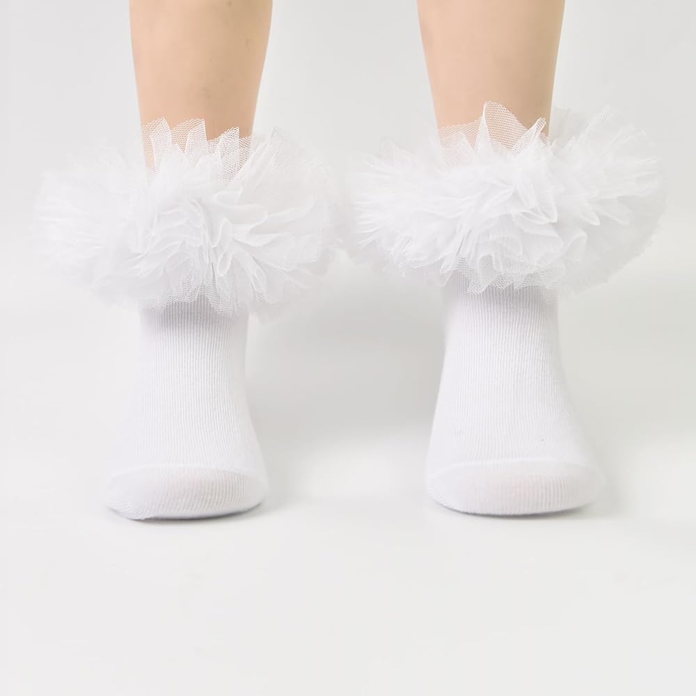 Introduction: our fashionable ankle socks with fluffy lace ruffles bring elegance to little girls' feet, and the princess style socks give an adorable look