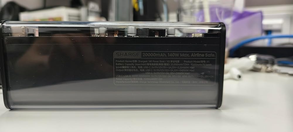 High-quality battery: The portable charger's transparent case is not gimmicky. We are proud to show the good stuff we pack inside. Powered by 4 advanced Samsung batteries, Shargeek 140 improves longevity, ensures safety, and enhances charging efficiency. Apart from that, the battery used in the Shargeek 140 has a low internal resistance, which greatly reduces heat buildup during charging and discharging.