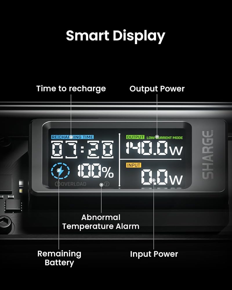 All-round protection: Shargeek 140 battery pack is equipped with an internal APS (Active Protecting System). With overcurrent protection, overvoltage protection, overload protection, under-voltage protection, overheat protection, and short-circuit protection to shield charging safety. And adopted a Bayer flame-retardant V0 grade PC to further secure safe charging.