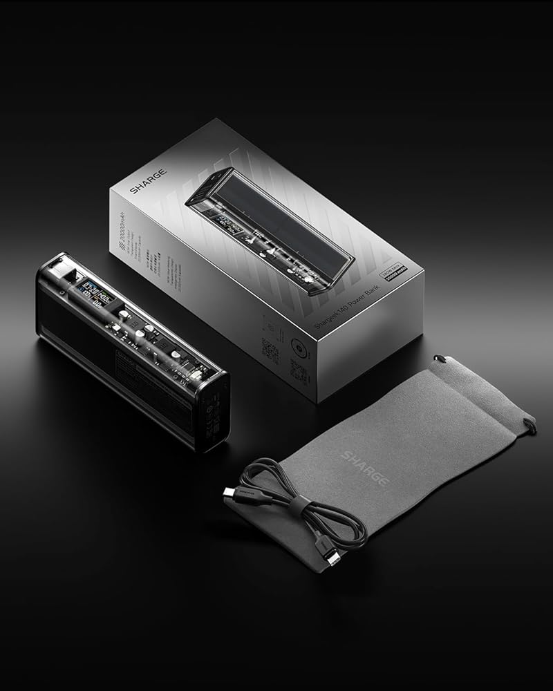 What You Get: SHARGEEK 140 power bank *1, 200W USB C cable *1, travel pouch*1, user guide, 12 months worry-free after-sales support.