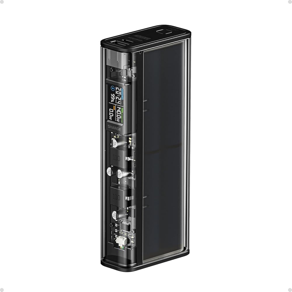 SHARGEEK 140 Power Bank, 140W Output 20000mAh Portable Charger with Screen Display, Transparent, USB C& USB A Port Laptop Power Bank for iPhone 17/16/15/14 Series MacBook Steam Deck