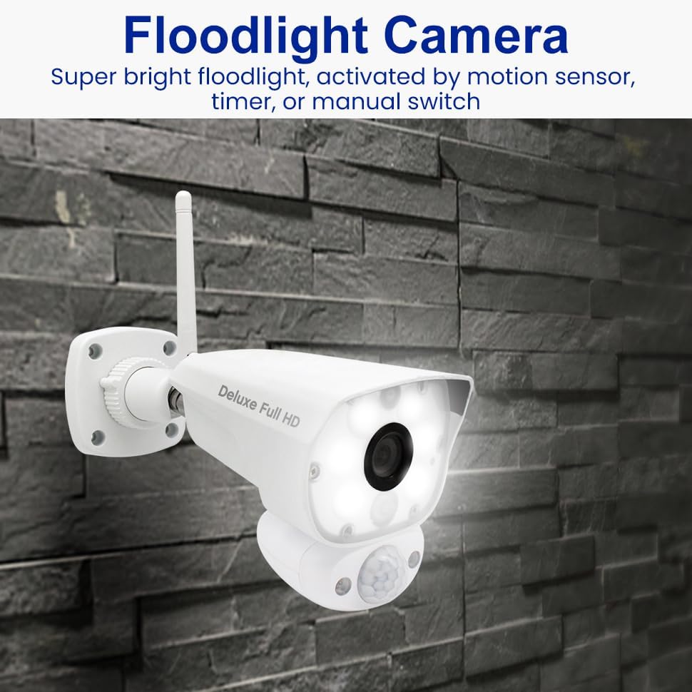See, hear and speak to people on your property from your 7” monitor, phone or tablet. Spotlights turn on and start recording as soon as motion is detected. 500 Lumen High Brightness white LED equipped with manual, motion and timer activation.