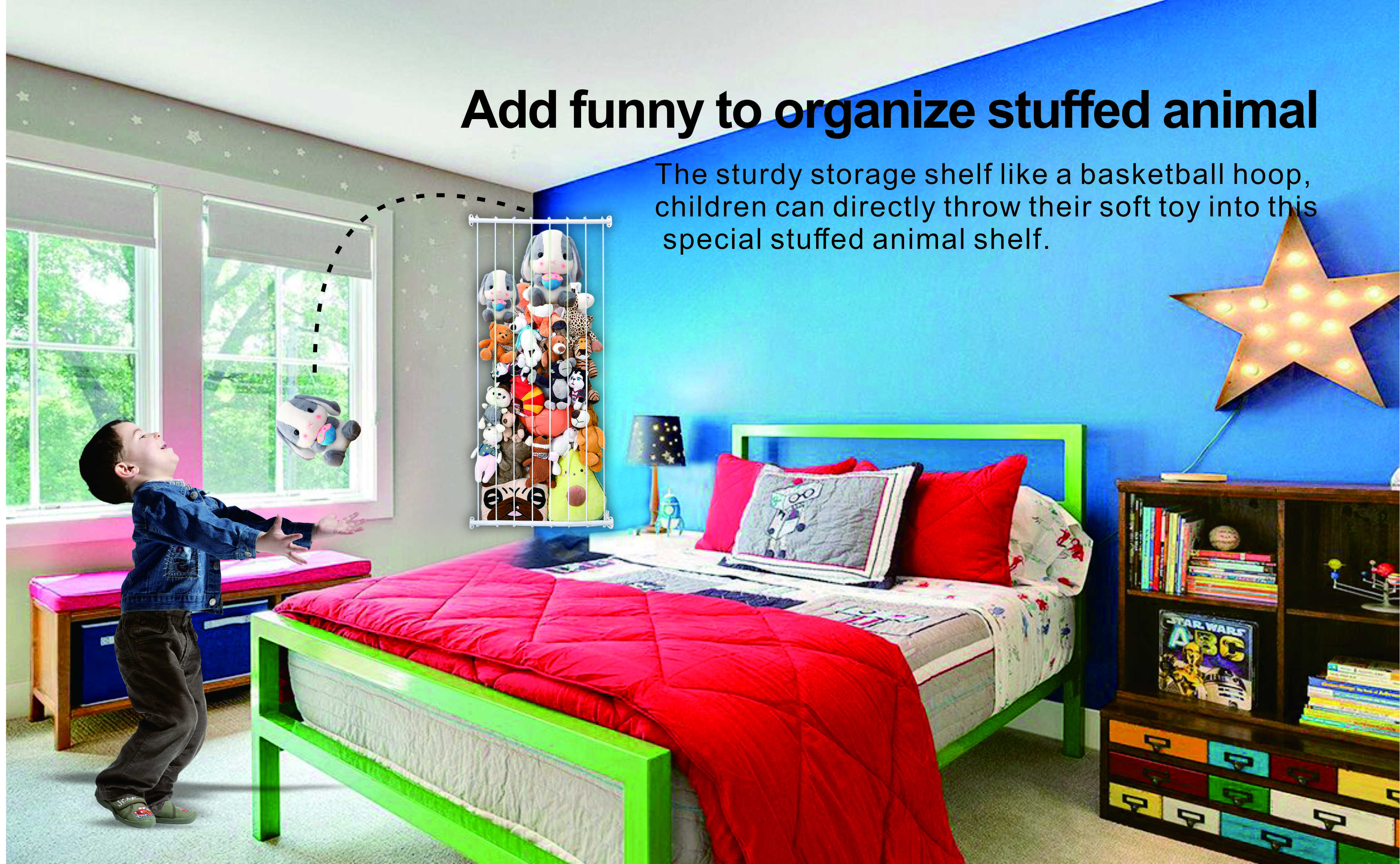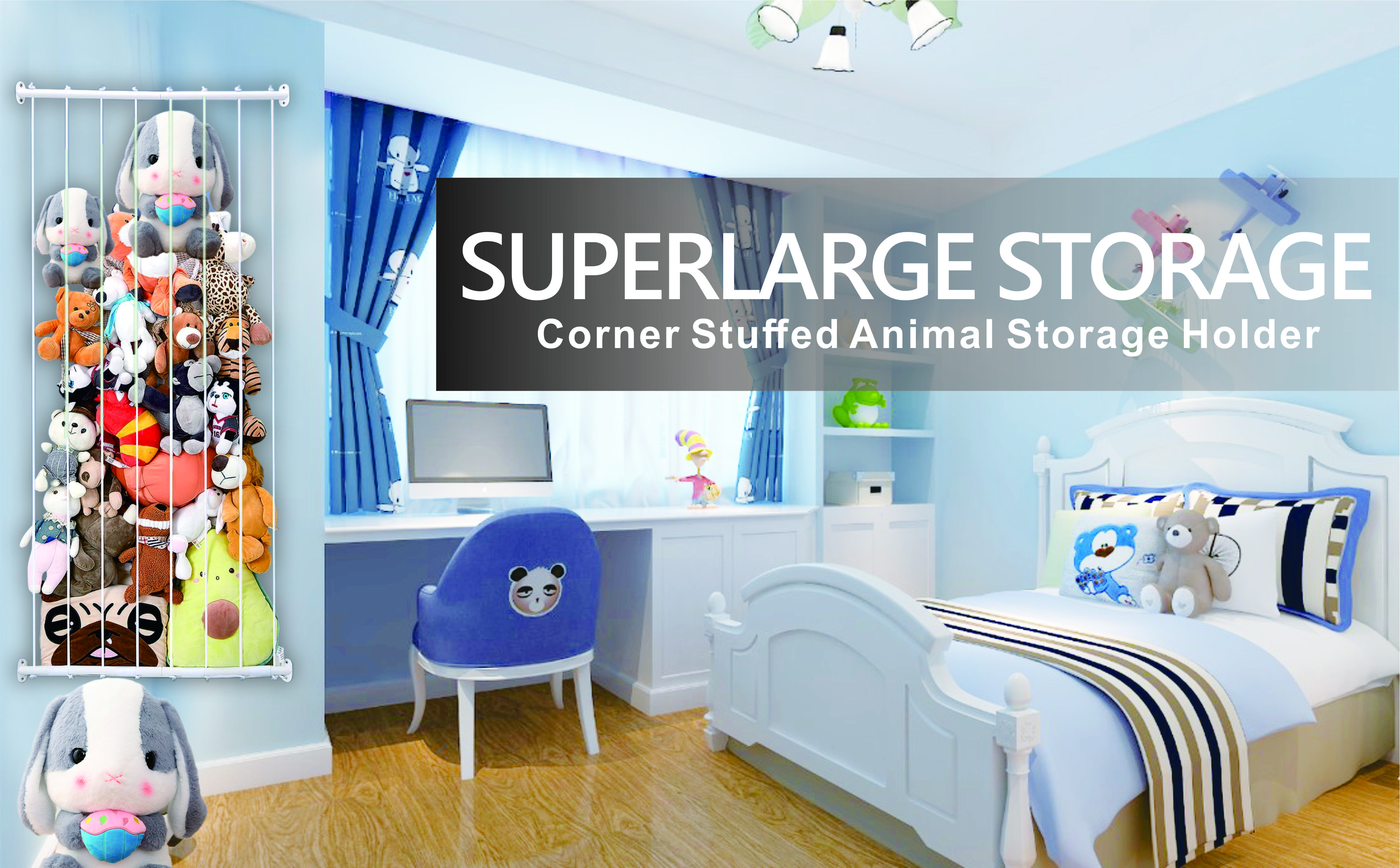 1. Efficient storage solution for utilizing idle space, perfect for organizing and storing stuffed animal toys using specially designed corner storage racks, keeping your room tidy and organized.