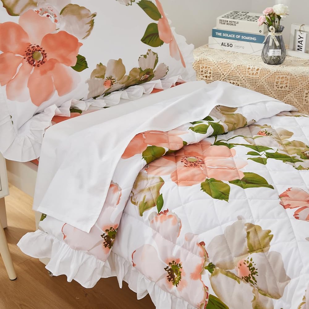 Brandream Toddler Bedding Set for Girls Bed in A Bag 4 Pcs Farmhouse Floral Comforter Sheet Set, 100% Cotton, Watercolor Flowers Leave Peach Yellow Green White
