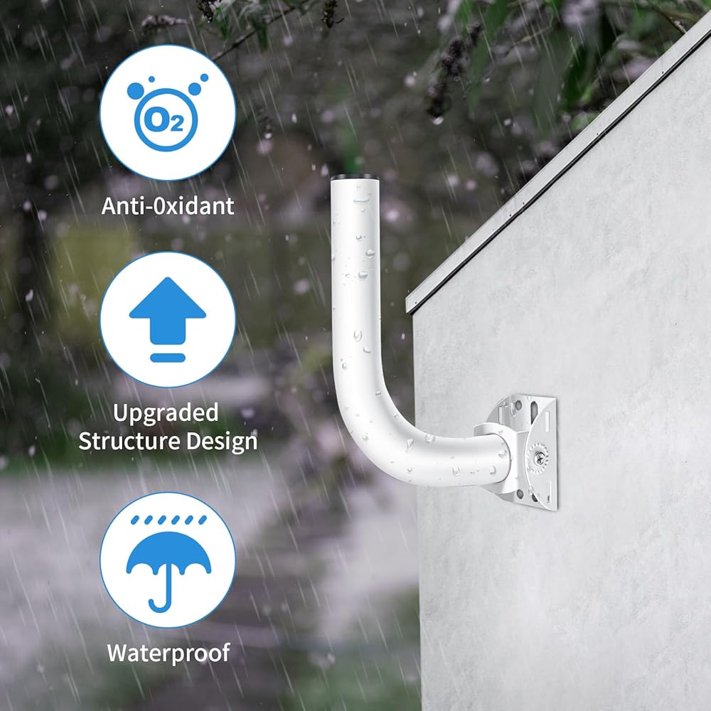 [Robust Outdoor Performance] Rust prevention design of pole mount bracket to withstand harsh weather conditions, ensuring long lasting performance without rusting or degrading. Ideal for use in exposed areas such as rooftops, walls, and poles, providing secure and stable mounting.