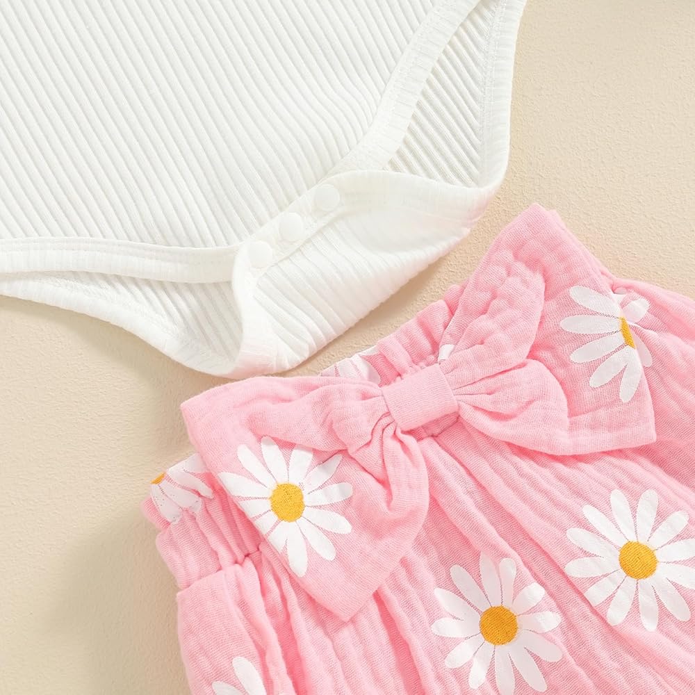 🌻MATERIAL: Baby girl summer outfit, baby girls clothes, romper is made of 95% cotton and 5% polyester, shorts is made of 95% polyester and 5% elastane, ultra soft, skin-friendly, durable and not easy to deform, makes your baby comfortable all day long.