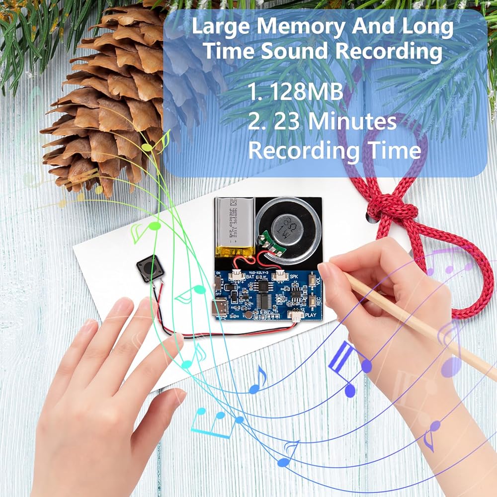 【23-Minute Recording Module】: This recording module, with a duration of 23 minutes, is ideal for adding a personal touch to greeting cards, music boxes, or other unique gifts. Embed it in a greeting card to animate your wishes, use it in a music box for a one-of-a-kind musical journey, or integrate it into other gifts for a custom touch. It's a delightful surprise for friends, family, or loved ones, enhancing your creative endeavors.